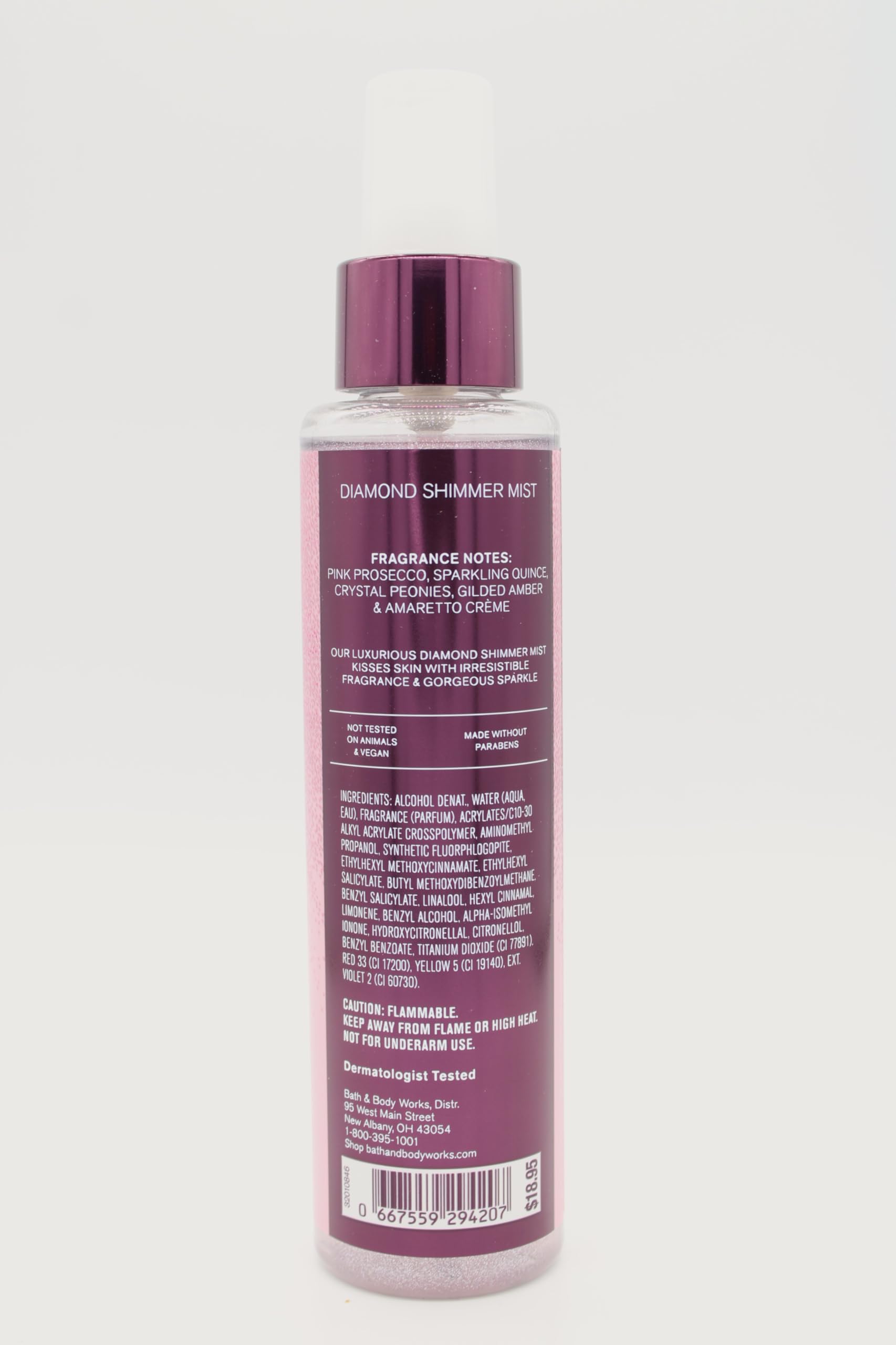 Dermatologist Tested. Not Tested on Animals & Vegan / Made without Parabens. Fragrance Notes: Pink Prosecco, Sparkling Quince, Crystal Peonies, Gilded Amber and Amaretto Crème. Fragrance: A Thousand Wishes.