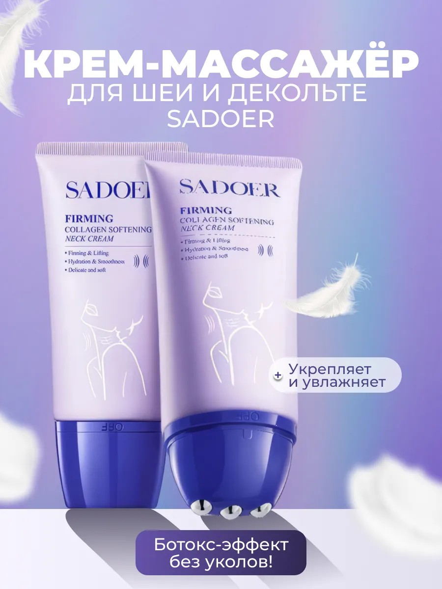 Омолаживающий подтягивающий крем для шеи и декольте с коллагеном, гексапептидом и гиалуроновой кислотой от Sadoer. Продукт с укрепляющей лифтинг формулой для антивозрастного ухода за кожей сокращает морщины, кожные заломы и тонкие линии, делает кожу упругой и подтянутой. Специальный массажный ролик усиливает действие и способствует глубокому проникновению средства, укрепляет линию шеи. Для особенной и нежной кожи увлажняющий омолаживающий крем с массажным аппликатором, контурная пластика лица - 3D массажер для лица, который корректирует возрастные изменения, избавит от второго подбородка и наполнит клетки кожи необходимыми веществами. Средство бандаж для овала лица с шелковистой текстурой и инновационной формулой стимулирует восстановительные процессы и заряжает энергией каждую клетку, отражает атаки свободных радикалов, укрепляет и подтягивает кожу. Крем роллер для массажа лица поможет укрепить линию шеи и контур лица и подарит удовольствие при использовании. Тщательно подобранная композиция крема дает подтягивающий, увлажняющий и питающий эффект. Обогащает кожу влагой и замедляет ее увядание. Разглаживающий лифтинг крем возвращает четкость контурам лица. Мгновенно появляется эффект подтяжки, который сохраняется в течение нескольких часов. Содержит увлажняющий комплекс — для глубокого увлажнения и питания. Питательное средство повышает упругость и эластичность кожи, моделирует более четкий контур. Косметическое уходовое средство для омолаживания уменьшает длину и глубину морщинок благодаря эффективному компоненту против старения — антиоксидантному комплексу, продукт изготовлен по корейской технологии. Подходит как уход крем для тела для проблемных зон. Также подходит для ежедневного применения как дневной и ночной anti age анти эйдж для всех типов кожи — сухой, жирной и комбинированной, в том числе для возрастной и чувствительной.