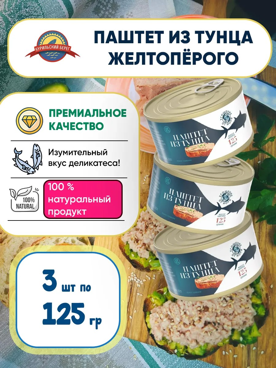 Угощение от моря Паштет из тунца консервы, 3шт по 125гр