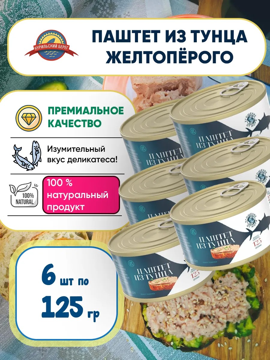 Нежная текстура и насыщенный вкус делают паштет из тунца универсальным дополнением к свежему хлебу, крекерам или тостам. Вес банки – 125 грамм, что удобно для индивидуального потребления или небольшой компании. Упакован в герметичную банку, паштет надолго сохраняет свежесть и вкусовые качества без необходимости хранения в холодильнике до вскрытия.