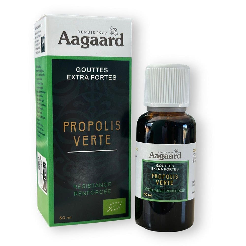 AGAARD Green propolis Extra strong drops Dietary supplement Organic farming Without preservatives Internal and external use Net content: 30 ml Green propolis has its specific color in its botanical origin, in fact this is explained by the fact that bees collect the protective resin from the buds of the Baccharis Dracunculifolia, a species of rosemary from the fields of the Asteraceae family that grows mainly in the south of Brazil in the state of Paraná, away from all pollution and pesticides, leaving a pure propolis and healthy, highly dosed in active ingredients. The composition of green propolis is of incredible richness in biological elements and of great complexity, it contains many polyphenols and phenolic acids that help protect and strengthen the body by improving the natural response to external aggressions. The source ZA Jacquins 42590 Neulise INGREDIENTS Green propolis extract pure 30 (carrier: alcohol ) Ingredient from organic farmingExtra strong drops with green propolis from the Aagaard laboratory strengthened resistance to spend the winter quietly, bottle of 30 ml.Aagaard Propolis groene druppels, extra sterk, biologisch, 30 ml AAGAARD Groene propolis Extra sterke druppels Voedingssupplement Biologische landbouw Zonder conserveringsmiddelen Intern en extern gebruik Netto inhoud: 30 ml Groene propolis heeft zijn specifieke kleur in zijn botanische oorsprong, in feite wordt dit verklaard door het feit dat bijen de beschermende hars verzamelen van de knoppen van de Baccharis Dracunculifolia, een soort rozemarijn uit de velden van de familie Asteraceae die voornamelijk in het zuiden van Brazilië groeit in de staat Paraná, weg van alle vervuiling en pesticiden, waardoor een zuivere propolis en gezond, sterk gedoseerd in actieve ingrediënten. De samenstelling van groene propolis is van ongelooflijke rijkdom aan biologische elementen en van grote complexiteit, het bevat veel polyfenolen en fenolzuren die het lichaam helpen beschermen en versterken door de natuurlijke reactie op externe agressies te verbeteren. De bron ZA Jacquins 42590 Neulise INGREDIËNTEN Groene propolis-extract zuiver 30 (drager: alcohol ) Ingrediënt uit biologische landbouwExtra sterke druppels met groene propolis uit het laboratorium Aagaard versterkte weerstand om de winter rustig door te brengen, fles van 30 ml.