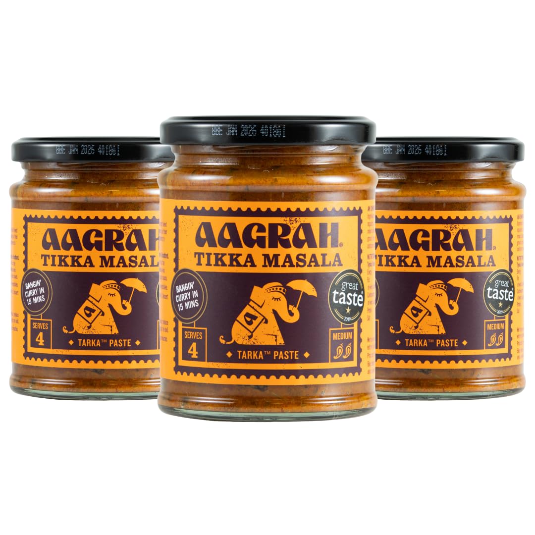 Aagrah Aagrah Tikka Masala Tarka Indian Curry Sauce - Authentic Restaurant Recipe Base - Medium Heat - 270g Jar for 3-4 People - 3 Pack