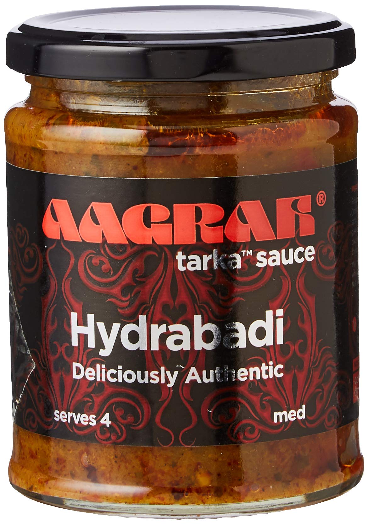 Another Aagrah Foods speciality! This recipe is an Aagrah Restaurants signature dish and has been one of our guest-favourites for over 30 years. The Aagrah Hydrabadi cooking sauce is milder than a Balti with an aromatic creamy sauce yet still full of flavour, the whole family will love this. Best cooked with chicken but also delicious with meat/vegetables, a Hydrabadi is great served with Pilau Rice or Garlic Nan. INGREDIENTS Fried onion (onion, sunflower oil), chopped tomato (tomato, tomato juice), vegetable oil (100% rapeseed oil), garlic, ginger, salt, chillies, turmeric, chilli powder, coriander leaf, garam masala (coriander, cinnamon, ginger, cloves), coriander ground, cumin, fenugreek leaves, citric acid, cardamom, natural flavouring. DIRECTIONS Best cooked with chicken but also delicious with meat/vegetables, a Hydrabadi is great served with Pilau Rice or Garlic Nan. SAFETY WARNING For allergen information see ingredients listed in CAPITALS MANUFACTURER CONTACT INFORMATION Aagrah Foods Ltd, 4 Saltaire Road, Shipley, BD18 3HN See moreGluten Free. Dairy Free. Best cooked with chicken but also delicious with meat/vegetables, a Hydrabadi is great served with Pilau Rice or Garlic Nan. Milder than a Balti with an aromatic creamy sauce yet still full of flavour, the whole family will love this. Hydrabadi Tarka Cooking Sauce - Another Aagrah speciality! This recipe is an Aagrah signature dish and has been one of our guest-favourites for over 30 years.