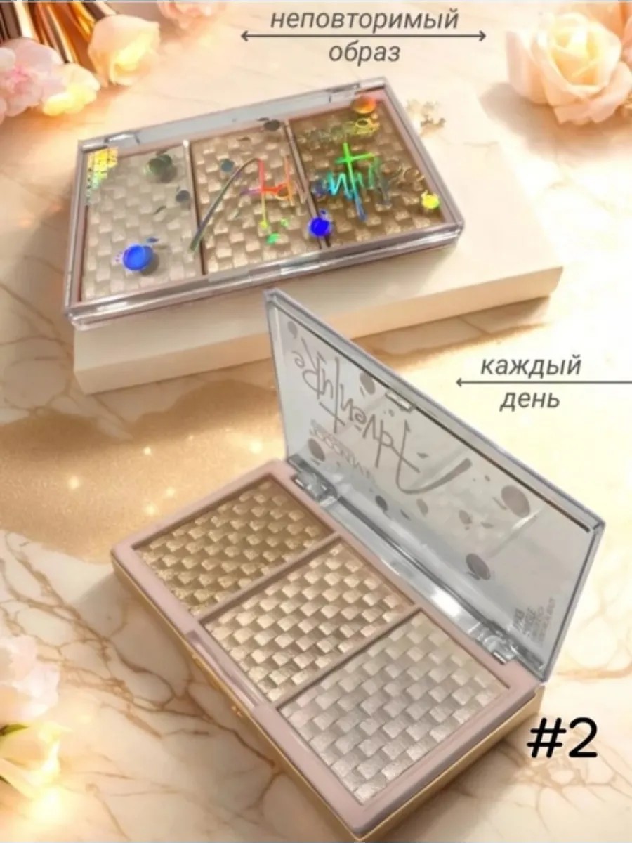 Пудровые хайлайтеры легко наносятся и растушевываются, не осыпаются и не скатываются. Подходят для любого типа кожи. В набор входит три оттенка хайлайтера, которые можно использовать как отдельно, так и смешивать друг с другом. Все оттенки гармонично сочетаются между собой. Для максимальной интенсивности и металлического финиша перед нанесением смочите кисть фиксирующим спреем для макияжа. Хайлайтер - это косметическое средство для лица, которое используется для придания сияния и подчеркивания определенных областей. В данной палетке сухих румян и скульпторов содержится разнообразие оттенков, включая розовый и бронзер, а также блестки для добавления блеска. Этот корейский продукт поможет достичь идеального контуринга и придать вашему внешнему виду свежий и лучезарный вид. Он подходит для использования в области глаз и других выделенных участках лица, чтобы придать им особое сияние и привлекательность.