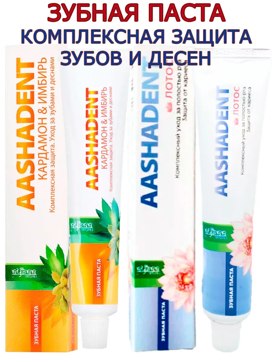 | Комплектация | Зубная паста "Кардамон-Имбирь" Aasha Herbals 100 г; Зубная паста Лотос Aasha Herbals 100 г |