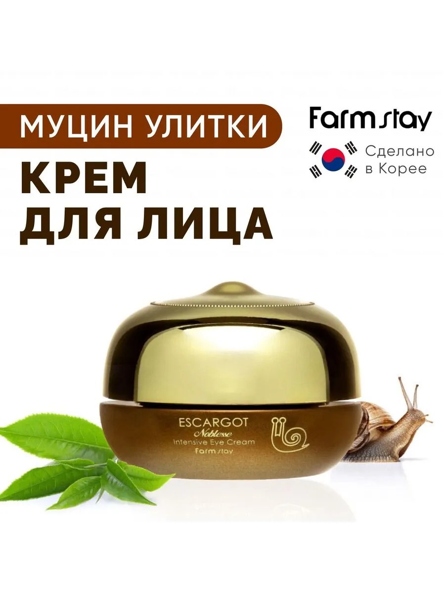 Крем для лица увлажняющий Корея с муцином улитки Escargot Noblesse Intensive Cream FarmStay направлен на комплексное решение 3 проблем: пигментация, подавление меланоза (веснушки), сокращение и уменьшения глубины морщин, против пигментный пятен. Корейский крем глубоко увлажняет, выравнивает тон, убирает покраснения, уменьшает постакне. Он антивозрастной и разглаживает мелкие морщинки, а также подтягивает овал лица, для упругости кожи. Можно использовать для области вокруг глаз. Благодаря муцину улитки, который является природным натуральным барьером, он защищает кожу от солнечных лучей и может использоваться как солнцезащитный. Имеет отбеливающий эффект и активизирует кровообращения, стимулирует обменные процессы в коже. Дневной и ночной Фарм стей подходит для всех типов кожи: как для сухой и чувствительной, так и для жирной кожи лица, комбинированной и проблемной, возрастной кожи 40+ и 50, зоны - для лица, шеи и зоны декольте, для тела. Действует от морщин, уменьшает их глубину и предотвращает появление новых. Омолаживающий кремушек для лица питательный подтягивает кожу, делает ее упругой, мягкой и ухоженной. Защитный крем для лица с коллагеном фарм стей оказывает глубокое увлажнение и питание кожи, против пигментации, лифтинг эффект. Применение: нанесите осветляющий крем на лицо по линиям массажа и вбейте его кончиками пальцев. Ключевые ингредиенты: экстракт королевской улитки, масло ши, экстракты алоэ, тигровой лилии, лаванды и магнолии, пчелиный воск, муцин улитки.