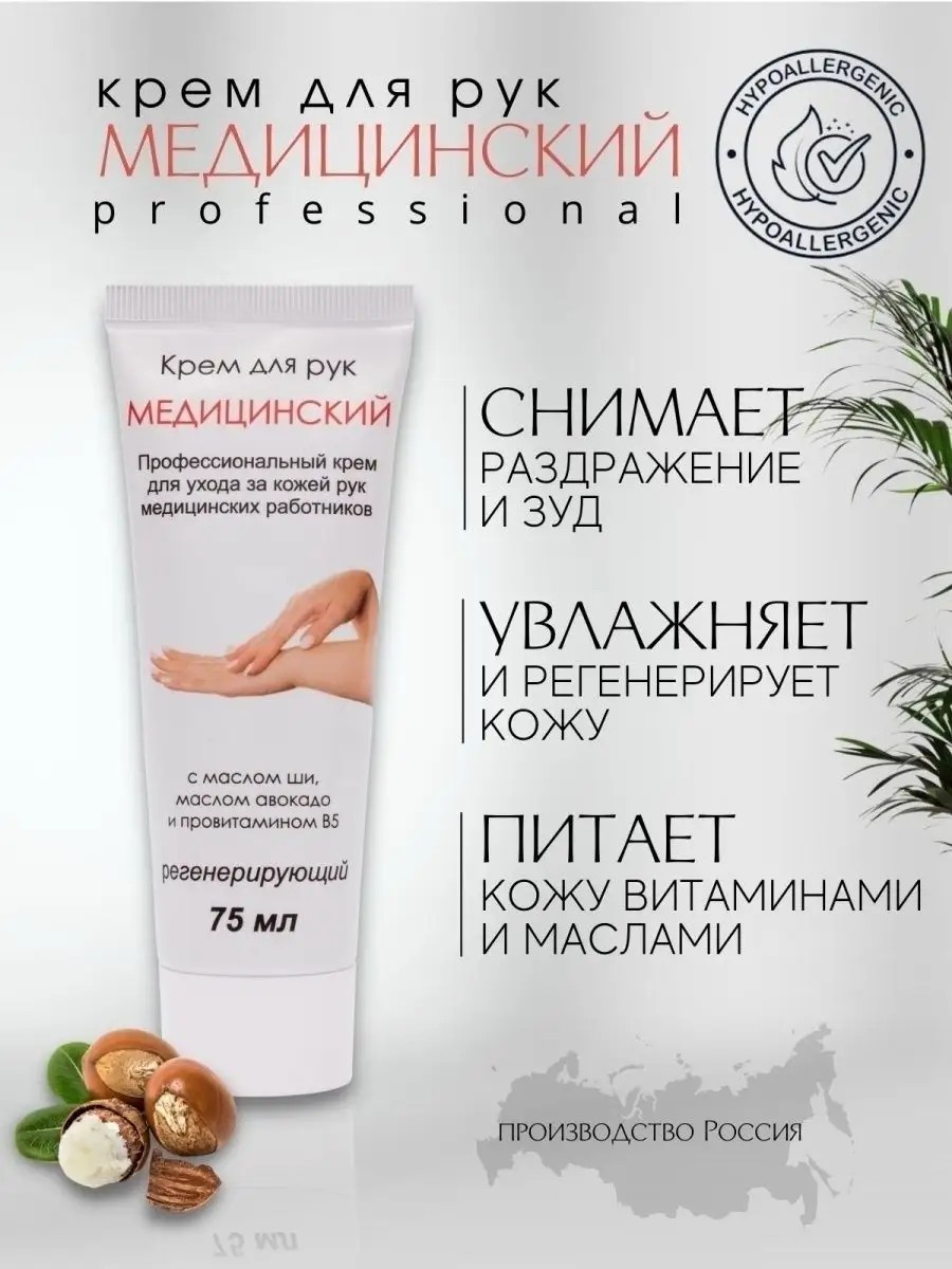 Профессиональный крем с маслом ши, маслом авокадо и провитамином В5 для ухода за кожей рук медицинского персонала и работников пищевой индустрии. Масло ши и масло авокадо, входящие в состав крема, обладают антиоксидантной активностью, уменьшают трансэпидермальную потерю воды, придавая коже мягкость и гибкость, восстанавливают и стабилизируют роговой слой кожи, препятствуя испарению влаги с его поверхности, оказывают регенерирующий эффект, улучшают структуру кожи, снимают чувство напряжения и раздражения. Витамины Е и F, замедляют процесс старения кожи, снижает уровень воспалительных процессов, стимулирует клеточное дыхание кожи, укрепляют мембраны клеток кожи. Провитамин B5 оказывает ранозаживляющее, противовоспалительное действие, способствует ускорению заживления ожогов, язв, трещин, мелких ран и ссадин. Способствует снятию раздражения и воспаления кожи рук в результате контакта с чистящими, моющими и дезинфицирующими средствами, активно увлажняет и питает кожу,устраняет шелушение. Восстанавливающий, питающий , регенерирующий профессиональный крем для ухода за кожей рук с маслом ши, авокадо и провитамином В5. Можно купить в подарок девушке, подруге, жене, бабушке, матери. Медицинский комбинированный крем подходит для проблемной и чувствительной кожи, жирной, для заживления трещин, ухода за руками, телом, ногами, пяток, телом , подойдет заживления ожогов, ран, против дерматита, как защитный. Используйте аптечный комбинированный крем после маникюра и педикюра, депиляции, загара и каждый день как повседневный уход . косметика