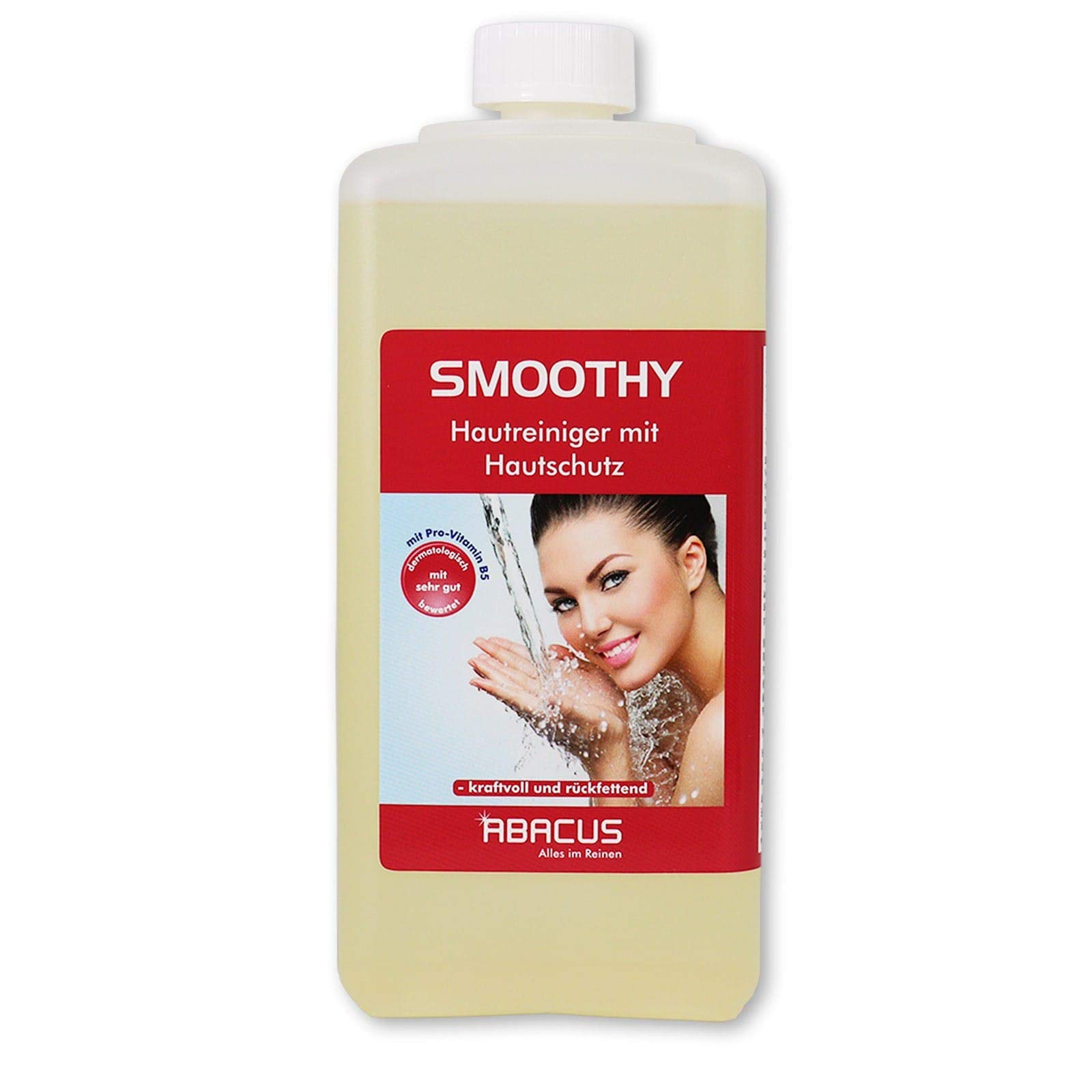 SMOOTHY is a nourishing skin cleanser ideal for use in workshops, factories, farms, the construction, aviation and shipping industries, printing plants, food companies, oil refineries, the automotive industry, and in areas with high runoff and grease loads. SMOOTHY cleanses the skin without irritating it. SMOOTHY does not contain any rubbing agents, alkalis, or solutions. SMOOTHY is also very well suited for body cleansing in the shower. Directions: Apply SMOOTHY to wet skin, wash thoroughly, and rinse with clean water. This product is also known as: hand soap, liquid soap, hand cleaner, skin protectant, grease remover, soap, hand wash pasteExtremely economical. Preserves the skin's natural acid mantle. Dissolves oil, grease, printing ink, and soot. Moisturizing. 1 x 1000ml bottle of Smoothy Euro hand soap.ABACUS Flacon de savon liquide Smoothy Euro (2510) - 1000 mlDESCRIPTION DU PRODUIT SMOOTHY est un nettoyant nourrissant pour la peau idéal dans les ateliers, les usines, les fermes, dans l'industrie de la construction, de l'aviation et de la navigation, dans les imprimeries, les entreprises alimentaires, les raffineries d'huile, l'industrie automobile et dans les domaines à forte charge de ruissellement et de graisse. SMOOTHY nettoie la peau sans irriter la peau. SMOOTHY ne contient pas de corps de friction. alcalins ou solutions. Moyen. SMOOTHY est également très bien adapté pour le nettoyage du corps lors de la douche. Utilisation : appliquer Smoothy sur la peau humidifiée, laver soigneusement et rincer à l'eau claire. Cet article est également appelé comme suit : savon pour les mains, savon liquide, nettoyant pour les mains, protection de la peau, graisse, savon, pâte de lavage pour les mainsExtrêmement économique. Préserve le film acide naturel de la peau. Dissout l'huile, la graisse, l'encre d'impression et la suie. Hydratant. 1 bouteille de savon pour les mains Smoothy Euro de 1000 ml.