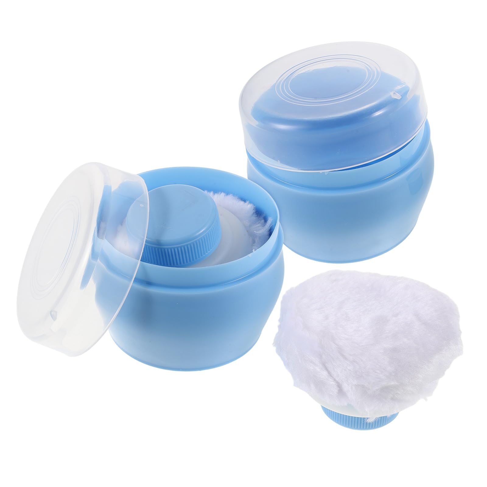 Abaodam Boîte à Poudre pour Bébé 2 Pièces avec Houppette Douce, Étui Portable Bleu Ciel, Distributeur de Poudre pour Couches, Soin Peau Sensible, Voyage et Change Rapide
