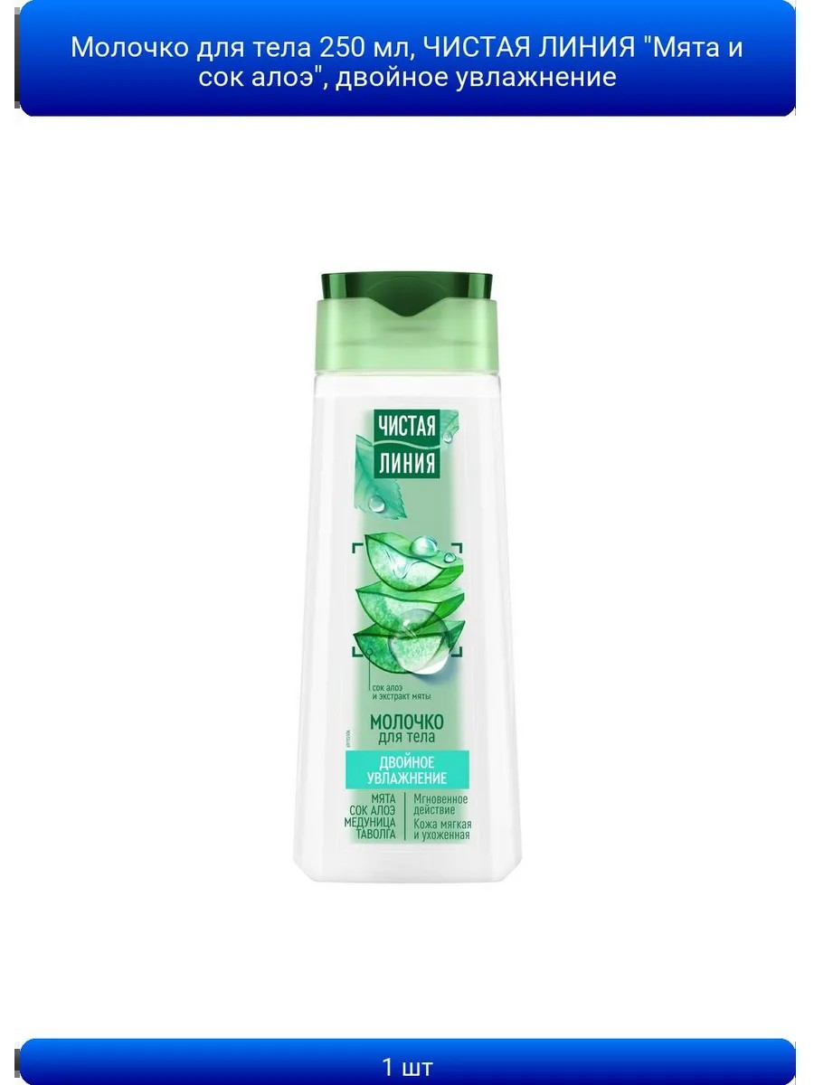 Молочко для тела 250 мл, ЧИСТАЯ ЛИНИЯ — Мята и сок алоэ, двойное увлажнение