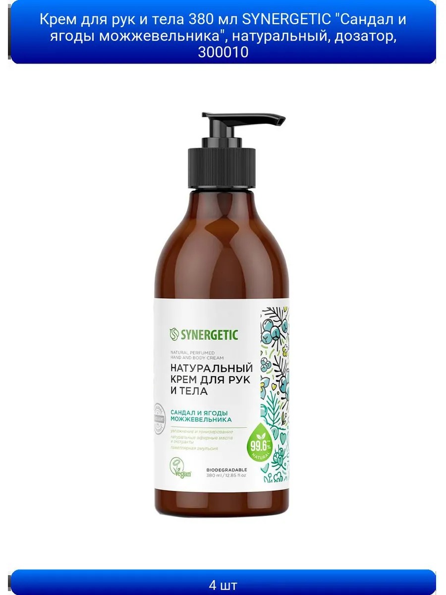 Крем для рук и тела SYNERGETIC Сандал и ягоды можжевельника (380 мл)