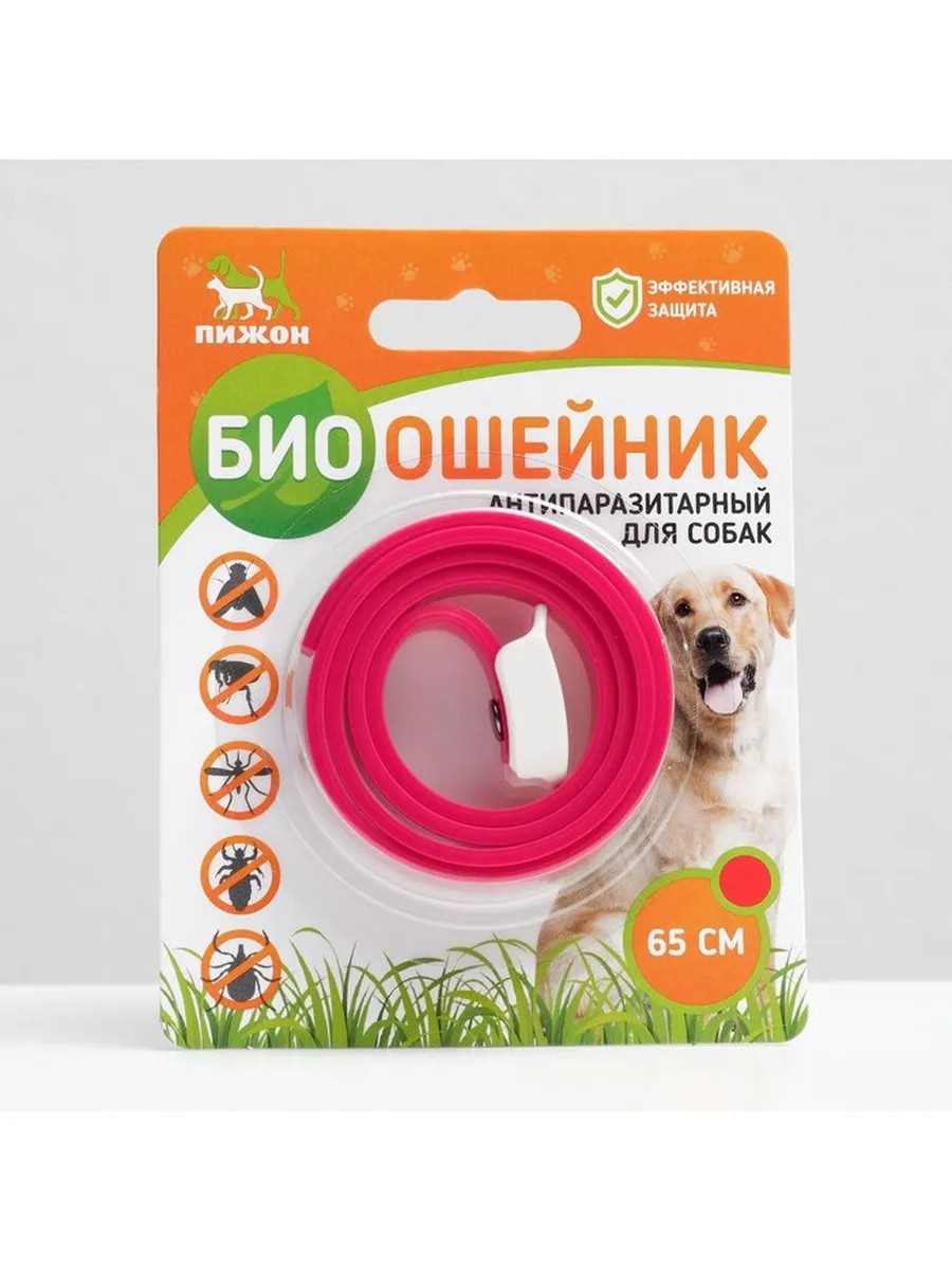 Биоошейник от паразитов "ПИЖОН" для собак от блох и клещей, красный, 65 см.