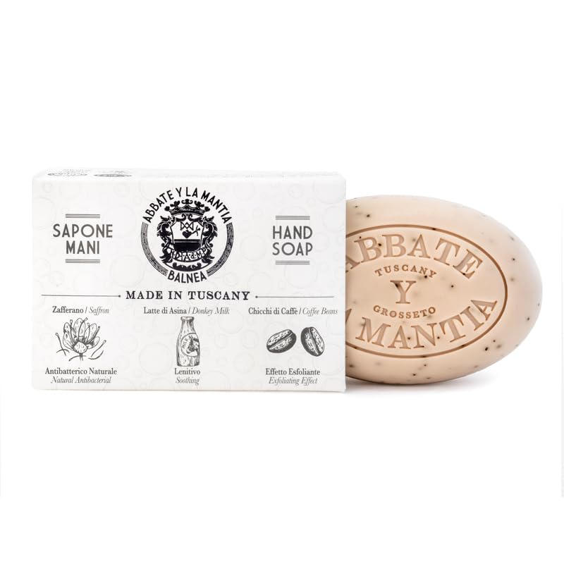 ABBATE Y LA MANTIA: Savon au Lait avec Grains de Café - Effet Gommage et Hydratation Profonde - Avec Lait d'a et Safran - 175g - Fabriqué en Italie Exfoliation profonde