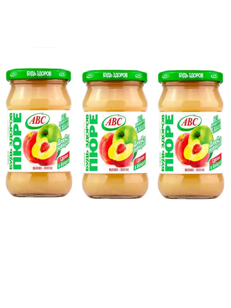 АВС, Пюре яблочно-персиковое 450 г, 3 штуки. Нежное и очень ароматное пюре, сочетающее в себе натуральную сладость яблок и персиков. Оно имеет мягкий, бархатистый вкус, с легкой кислинкой и приятной фруктовой ноткой, а также нежную и гладкую текстуру. Пюре идеально подходит для приготовления десертов, напитков или в качестве добавки к йогурту и смузи. Состав: пюре из яблок (яблоки, антиокислитель аскорбиновая кислота), вода питьевая, пюре персиковое концентрированное (персики, антиокислитель аскорбиновая кислота).