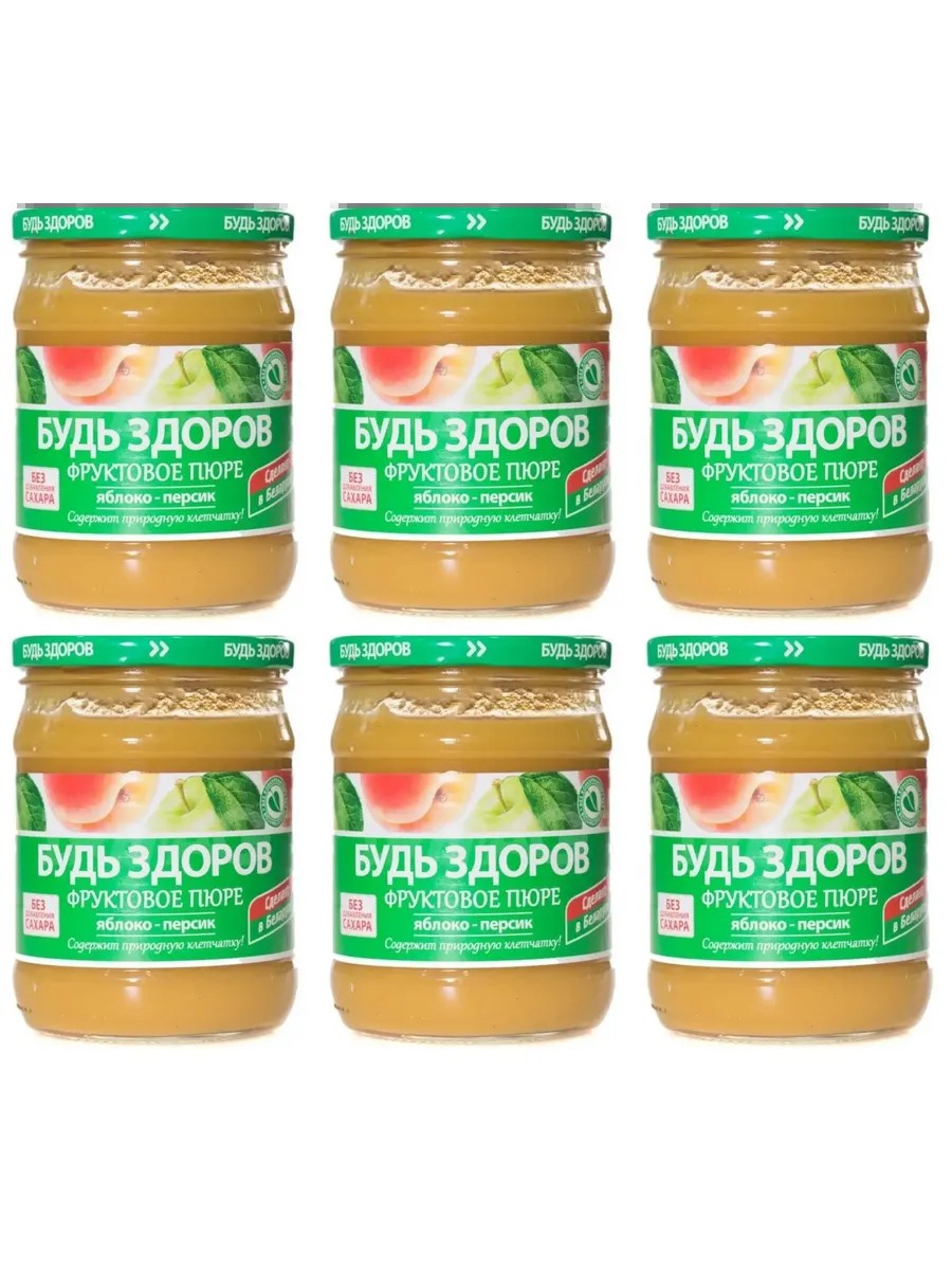Фруктовое пюре Яблочное, персиковое пюре "Будь Здоров" АВС, 6шт по 450 г