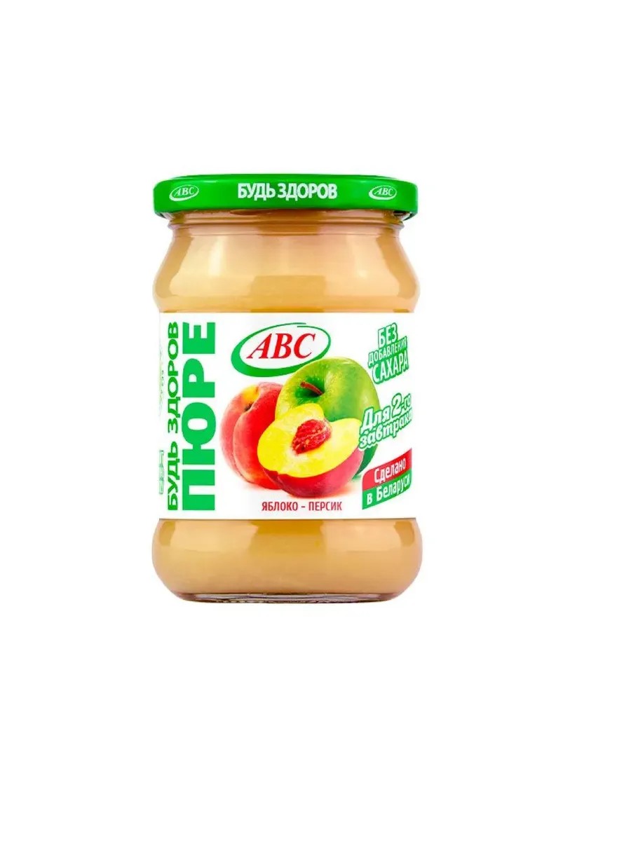 АВС, Пюре яблочно-персиковое 450 г, 1 штука. Нежное и очень ароматное пюре, сочетающее в себе натуральную сладость яблок и персиков. Оно имеет мягкий, бархатистый вкус, с легкой кислинкой и приятной фруктовой ноткой, а также нежную и гладкую текстуру. Пюре идеально подходит для приготовления десертов, напитков или в качестве добавки к йогурту и смузи. Состав: пюре из яблок (яблоки, антиокислитель аскорбиновая кислота), вода питьевая, пюре персиковое концентрированное (персики, антиокислитель аскорбиновая кислота).
