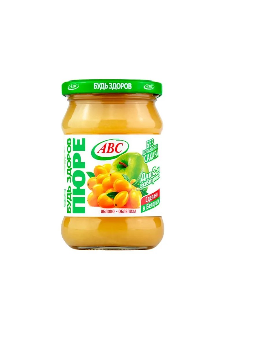 АВС, Пюре яблочно-облепиховое 450 г, 1 штука. Пюре из яблок и облепихи имеет нежную текстуру и неповторимый аромат. Сочетание сладких яблок и приятной кислинки облепихи создают яркий и необычный вкус. Полезный деликатес без содержания сахара подарит Вам заряд энергии на весь день. Состав: пюре из яблок (яблоки, антиокислитель аскорбиновая кислота), облепиха.