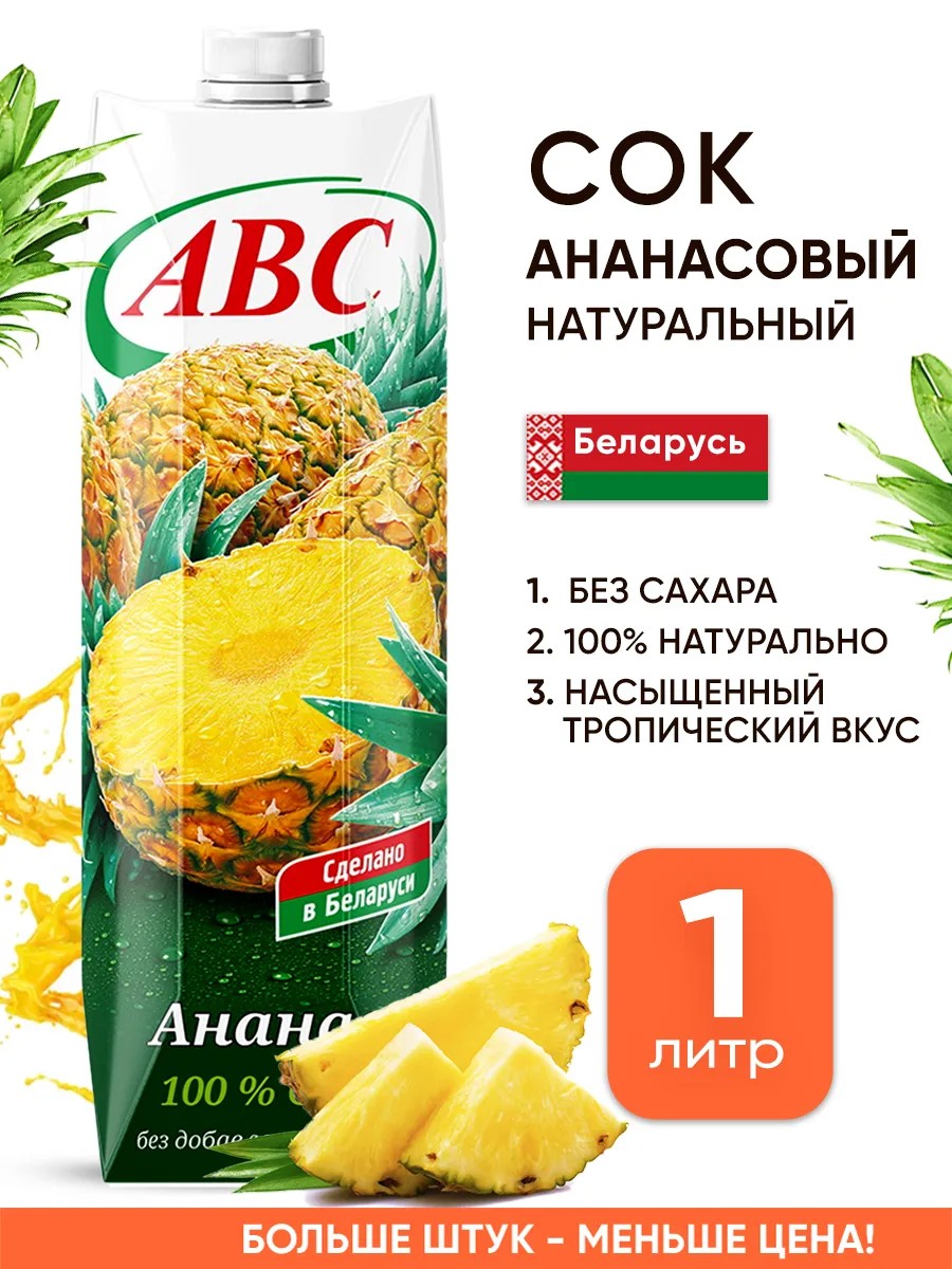 ABC / Будь Здоров! Ананасовый сок без сахара натуральный 1л коробка