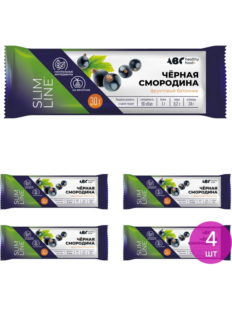 ABC Healthy Food Диетический батончик фруктовый с черной смородиной 30г, 4 шт