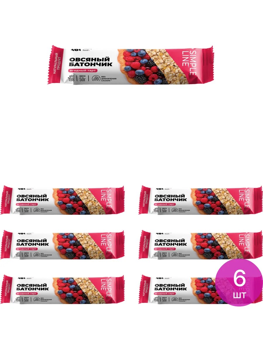 ABC Healthy Food Диетический батончик Овсяный, ягодный тарт, 50г, 6 шт