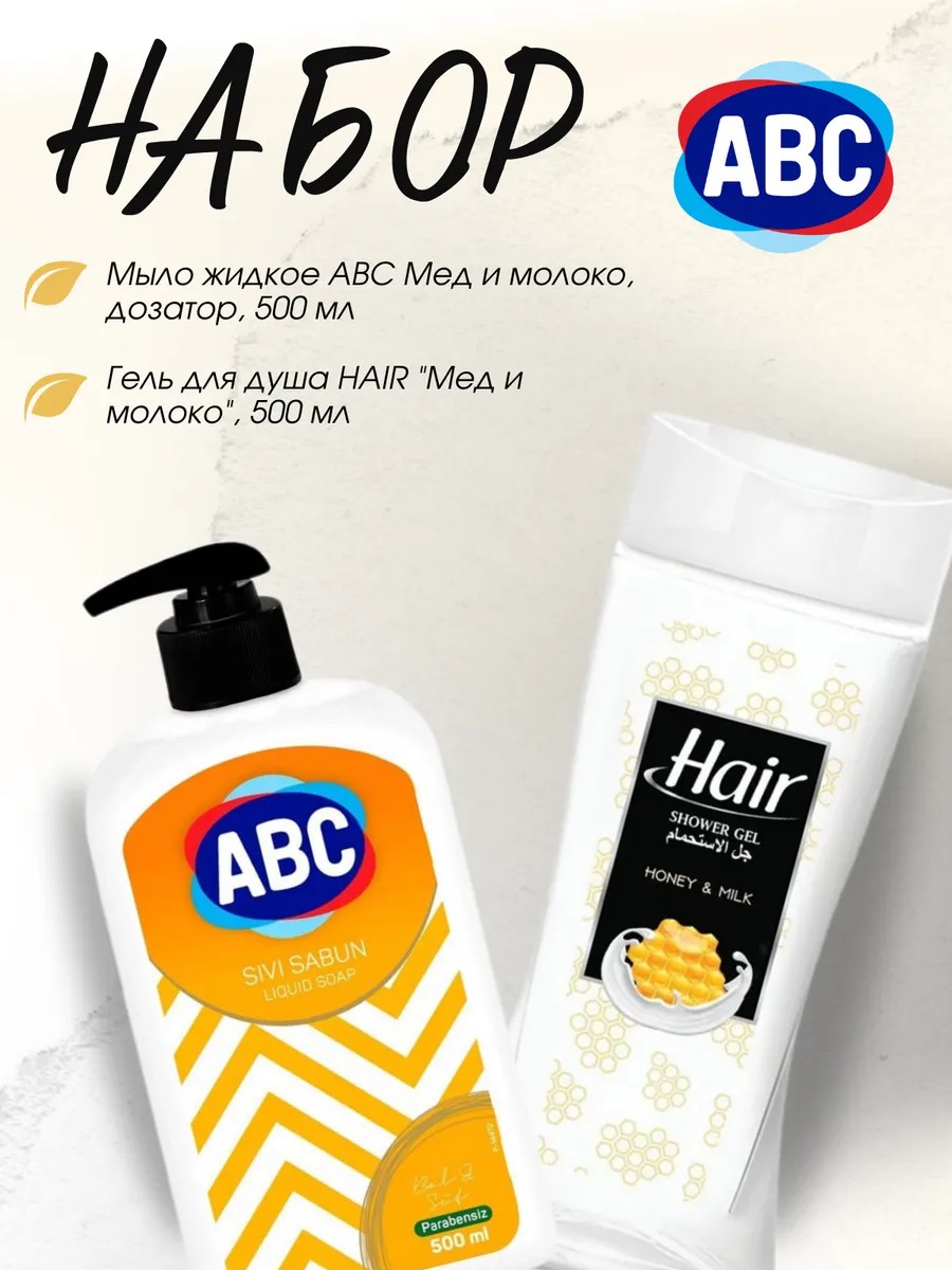 ABC Набор для душа: гель + жидкое мыло, Мед и молоко