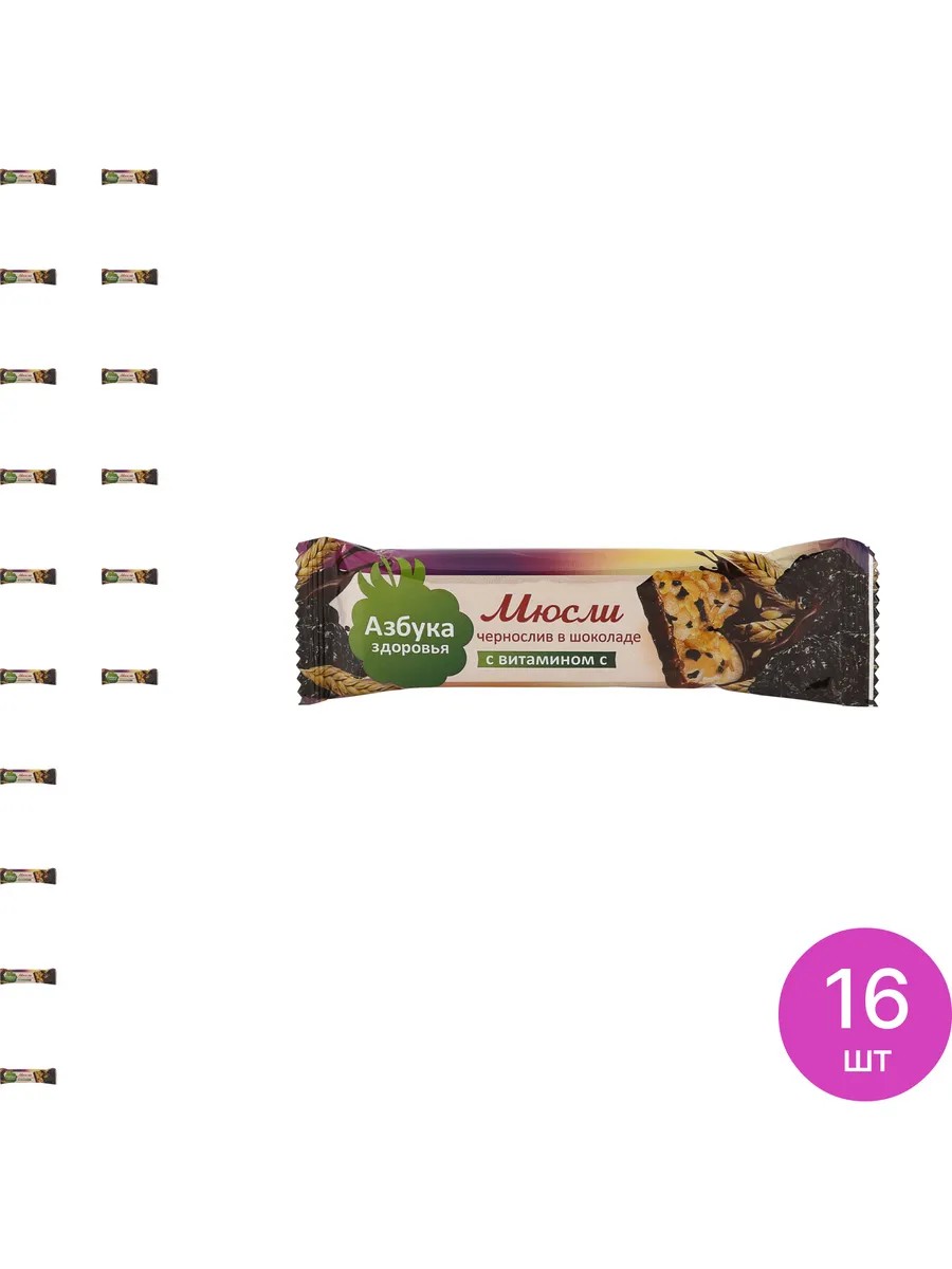Азбука здоровья Батончик мюсли чернослив в шоколаде с (комплект из 16 шт)