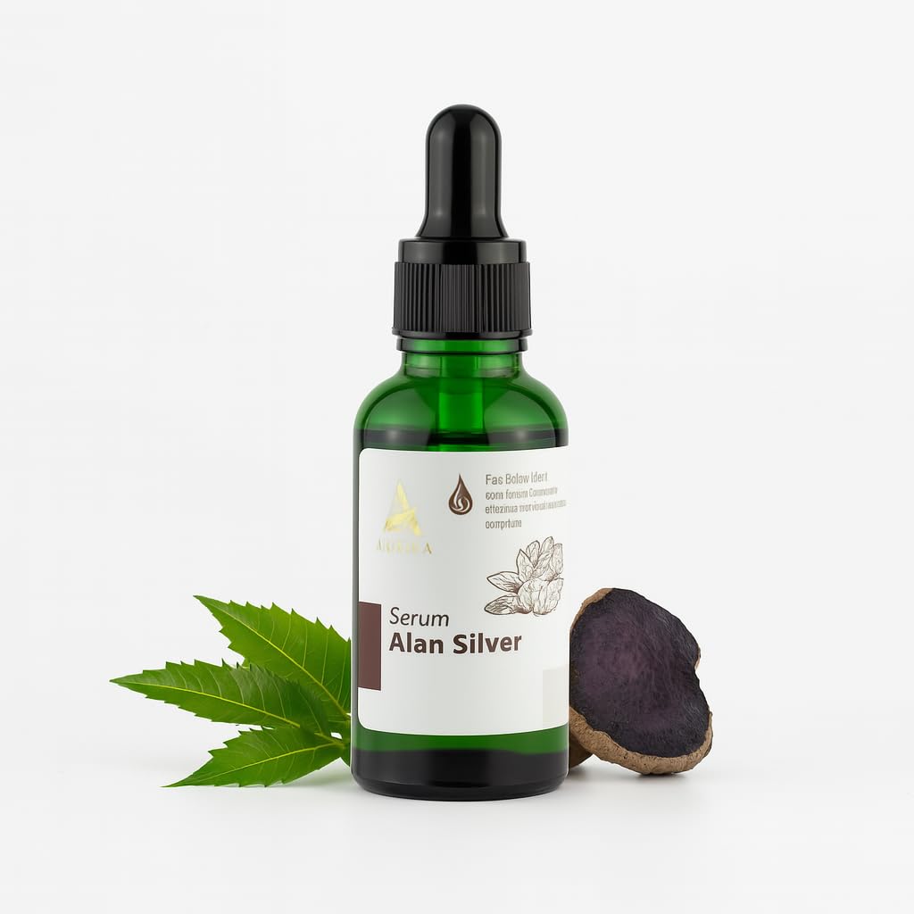 ABERA Alan Silver Serum Botanical Hydration for Sensitive Dry or Flaky Skin Plant-Based Face & Body Moisturizer with Black Ginger Neem Leaf & Cedar Oil 25ml 1 Box
