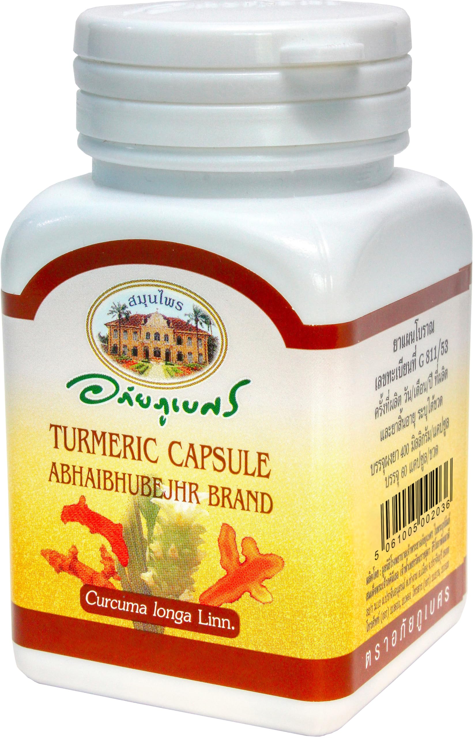 ABHAIBHUBEJHR Turmeric Herbal Dietary Supplement 60 Capsules (Curcuma Longa Linn). Imported from Thailand.