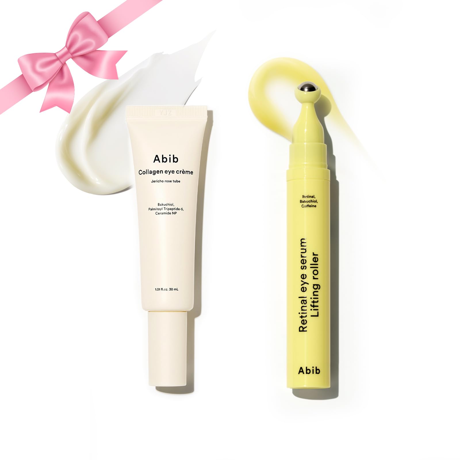 Abib Eye Treatment Bundle Collagen Eye Cream Tube + Retinal Eye Serum Roller for Dark Circles & Puffiness