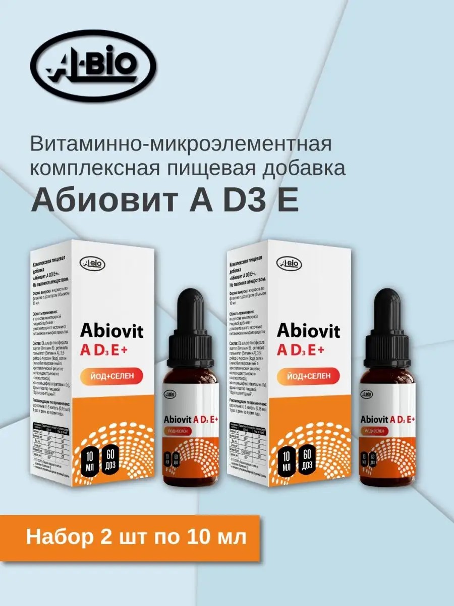 А-БИО Абиовит A D3 E йод+селен A-bio, 2х10 мл.