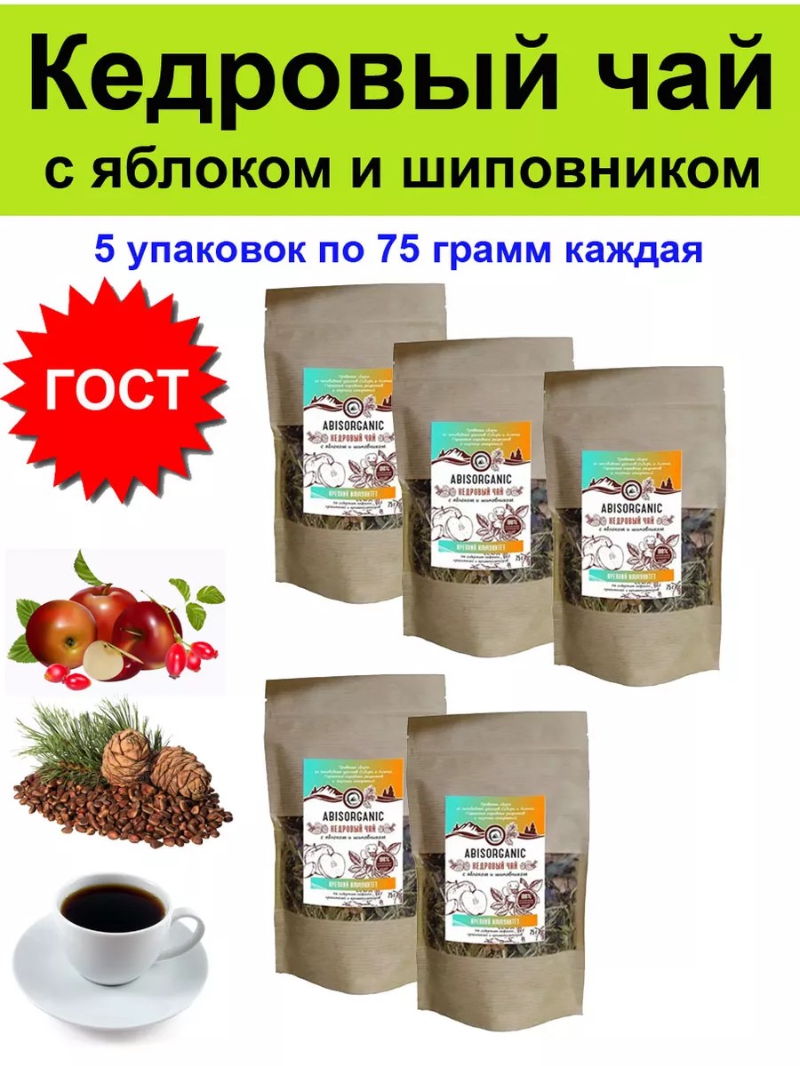 ABISORGANIC Кедровый чай с яблоком и шиповником ароматный 75 гр - 5 шт