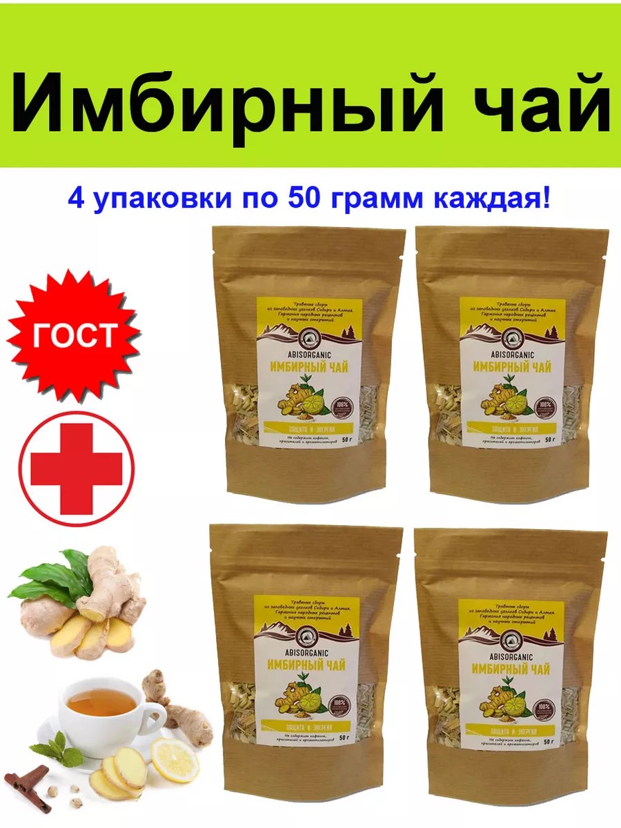 Вы получаете 4 упаковки "Имбирный чай. Защита и энергия", каждая упаковка весит 50 грамм!