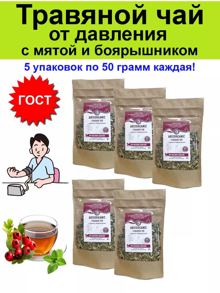 Вы получаете 5 упаковок "Травяной чай от высокого давления с мятой и боярышником", каждая упаковка весит 50 грамм!