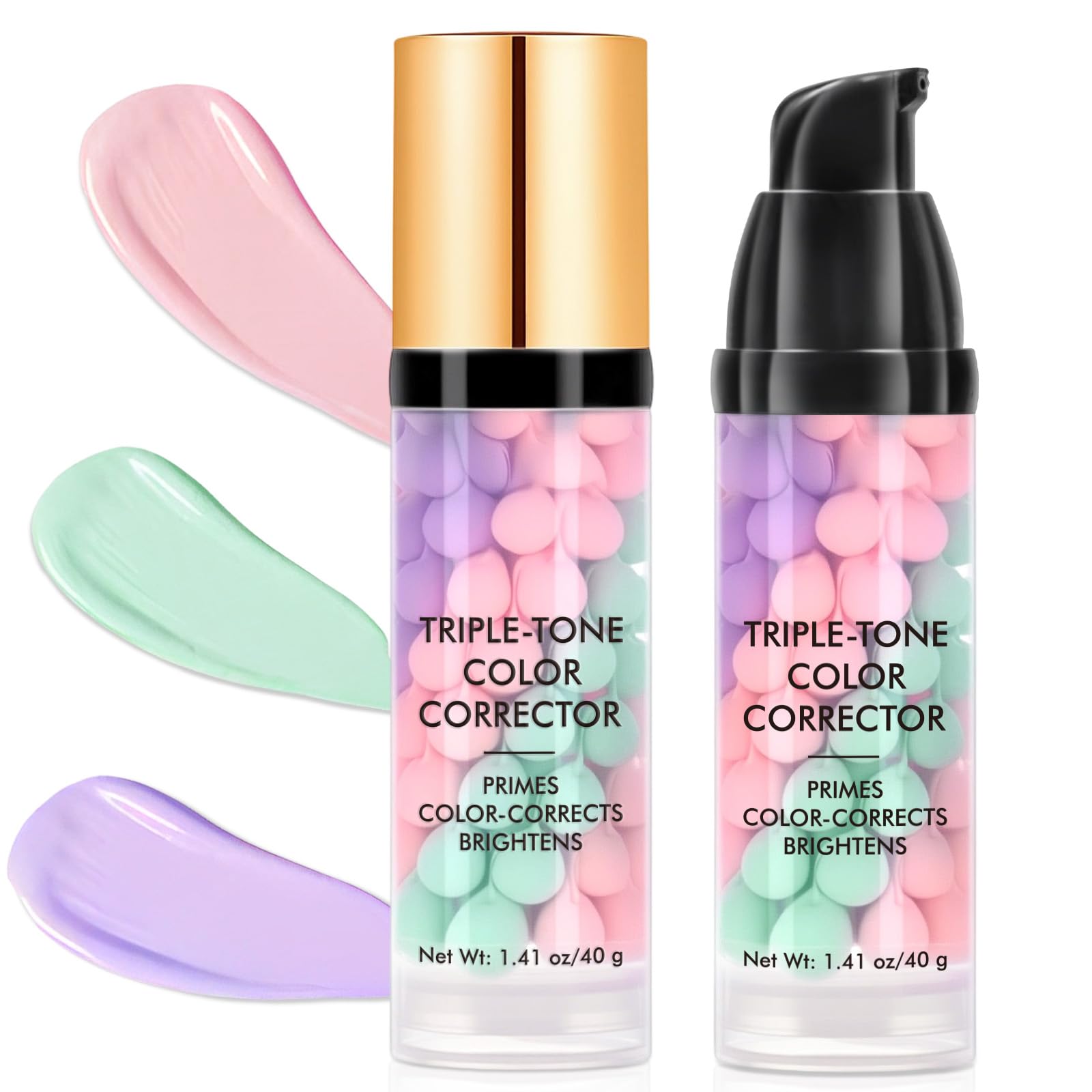 TRIPLE-TONE Color CORRECTOR PRIMES COLOR CORRECTS BRIGHTENS primer makeup broad spectrum SPF50 Skin Tone-Correcting Oil-Control Hydrating Water Resistant Sweat Proof Net Wt: 1.41oz 40g SAFETY WARNING For external use only?For all skin types: Our primer makeup gentle, non-irritating, paraben and mineral oil free formula is certified vegan and cruelty free for sensitive skin. ? FOR A NATURAL, PERFECT LOOK: Our multi-purpose makeup base camouflages minor blemishes and brightens your natural skin tone, perfect for everyday wear or for overlaying another makeup. Nourishing ingredients that both protect and repair – in the makeup primer, sodium hyaluronate (hydrating), hydrolyzed pearl (whitening), cactus fruit extract (antioxidant) and other natural ingredients protect the skin from the sun and nourish it at the same time. ? Long-lasting anti-perspirant makeup - waterproof and anti-sweat formula, suitable for sports and summer. 12 hours of oil control combined with a breathable texture, which provides fresh, matte makeup all day long. ? Highly effective sun protection perfect coverage in one: primer with SPF50 PA provides broadband protection against UV rays, and the Tri-Color correction technology aims to solve skin tone problems to realize "sunscreen primer in one step".Primer make-up met breed spectrum SPF50 , huidkleurcorrectie, waterbestendig en zweetbestendig, driekleurig zonnebrandcrème en concealer, hydraterende make-upbasis, multicolor2, verpakking van 2 stuks Multicolor2 40 g (1er Pack) TRIPLE-TONE Color CORRECTOR PRIMES KLEURCORRECTS BRIGHTENS primer make-up breed spectrum SPF50 Skin Tone-Correcting Oil-Control Hydrating Waterbestendig Zweet Proof Netto Wt: 1,41oz 40g VEILIGHEIDSWAARSCHUWING Alleen voor uitwendig gebruik? Voor alle huidtypes: onze primer-make-up zachte, niet-irriterende, paraben- en minerale olievrije formule is gecertificeerd veganistisch en wreed vrij voor de gevoelige huid. ? Voor een natuurlijke, perfecte look: onze multifunctionele make-upbasis camoufleert kleine onzuiverheden en fleurt je natuurlijke huidtint op, perfect voor de dagelijkse weg of voor het overlappen van een andere make-up. Voedende ingrediënten die zowel beschermen als repareren – in de make-up primer, natriumhyaluronaat (hydraterend), gehydrolyseerde parel (witmakend), cactusvruchtextract (antioxidant) en andere natuurlijke ingrediënten beschermen de huid tegen de zon en voeden deze tegelijkertijd. ? Langdurige anti-transpiratie-make-up – waterdichte en anti-zweetformule, geschikt voor sport en zomer. 12 uur oliecontrole in combinatie met een ademende textuur, die de hele dag door voor een frisse, matte make-up zorgt. ? Zeer effectieve bescherming tegen de zon perfecte afdekking in één: primer met SPF50 PA biedt een breedbandbescherming tegen uv-stralen, en de Tri-Color-correctietechnologie is bedoeld om problemen met de huidtint op te lossen om "zonnebrandcrème primer in één stap" te realiseren.
