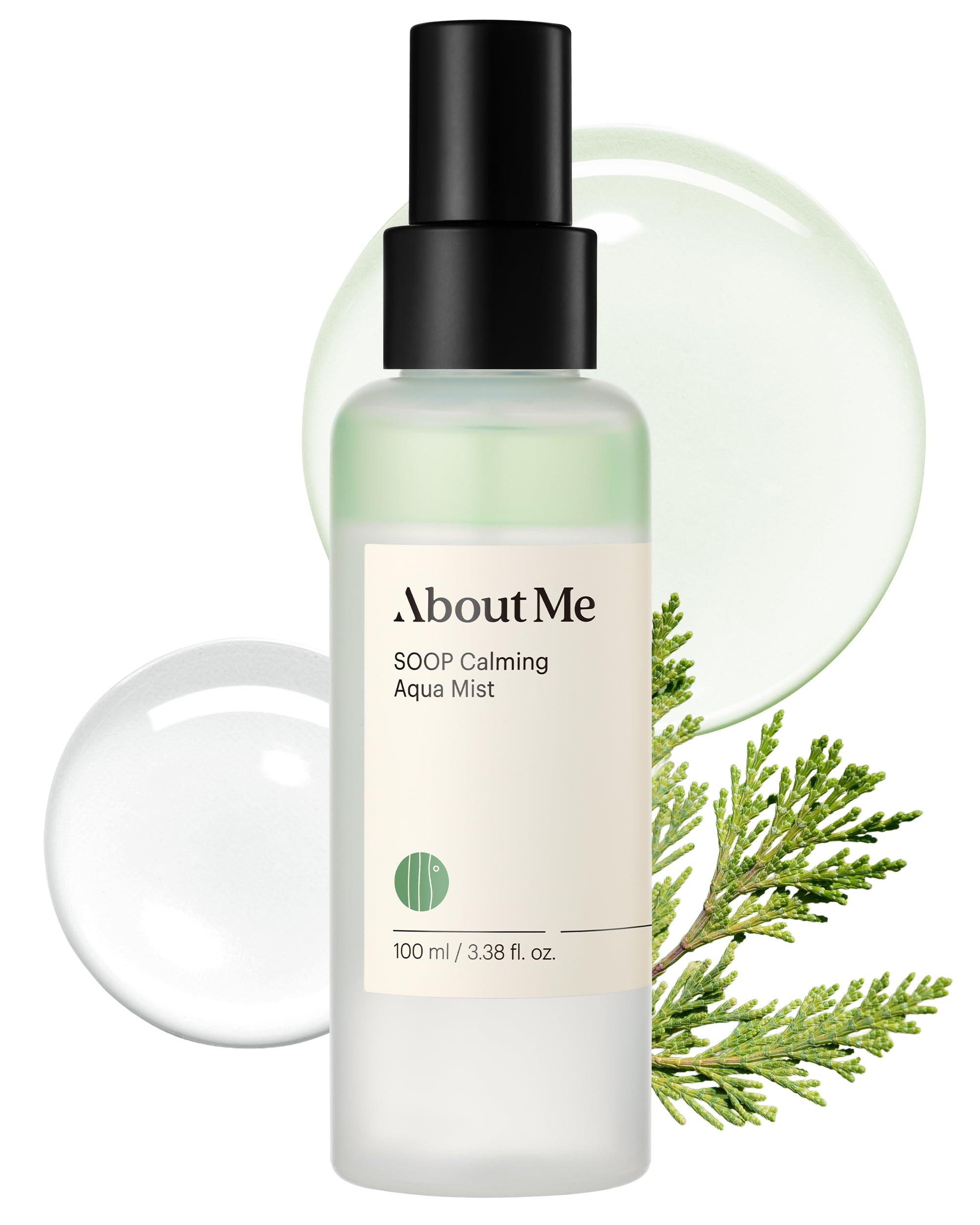 VEGAN CLEAN FORMULA COMPLETE SOOP FOREST RITUAL: Alcohol-free, paraben-free, vegan-certified formula designed with care for all skin types. The SOOP line draws on the calming power of the Korean forest – pair with ABOUT ME Rice Makgeolli Cleansing Foam (Step 1) and Rice Makgeolli Skin Softener (Step 2), then mist throughout the day for on-the-go forest calm. 4.23 fl oz. pH-BALANCED FORMULA – HELPS SUPPORT YOUR SKIN'S NATURAL COMFORT: The mildly acidic pH formula helps maintain your skin's optimal balance without disrupting its natural defenses. Clinically evaluated to help support skin comfort with daily use. Gentle enough for easily irritated or sensitive skin – a calming step you can trust morning and night. ULTRA-FINE FOG SPRAY – OVER MAKEUP, AT YOUR DESK, ON THE PLANE: The micro-fine mist disperses like a gentle fog – no dripping, no clumping, no makeup disturbance. Use as a hydrating toner after cleansing, a midday refresh at a dry office, or a makeup setting mist for a dewy, natural finish. Lightweight and non-sticky, it absorbs instantly without greasy residue. BI-PHASE OIL WATER FORMULA – SHAKE FOR HYDRATION THAT STAYS: Unlike single-layer mists that evaporate within minutes, this dual-phase formula combines a calming cypress water layer with a nourishing oil layer of borage seed and jojoba oil. Shake 3–5 times to blend, and the fine spray delivers both instant hydration and a lightweight moisture seal – keeping skin comfortable for hours, not seconds. 80.4 JEJU CYPRESS WATER – FOREST CALM IN EVERY SPRITZ: While most face mists use purified water, this mist starts with 80.4 Jeju Island cypress water, naturally rich in phytoncide. Combined with a 6-herb complex of Centella, tea tree, chamomile, lavender, and allantoin, it helps comfort stressed-looking skin so it feels soothed and relieved – no stinging, no tightness, just calm.