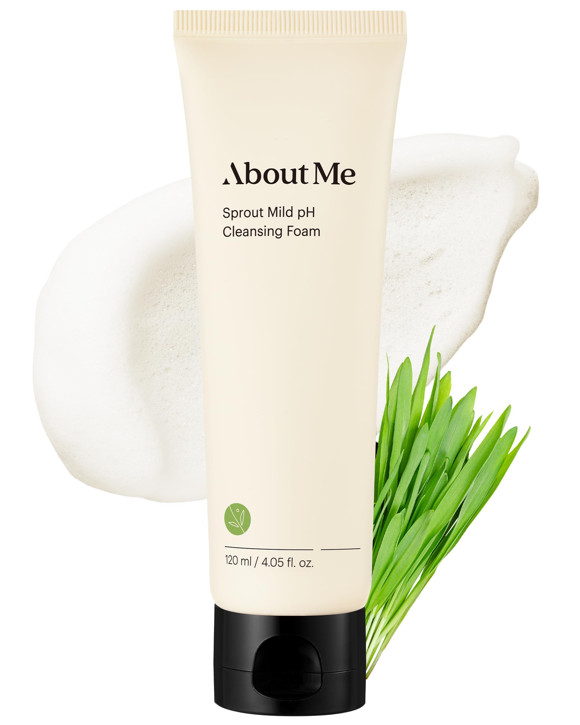 About Me Sprout Mild pH Cleansing Foam Korean Wheat Broccoli Sprout Extract Face Wash for All Skin Types Daily Gentle Cleansing with Amino Acids Korean Skin Care 4.05oz 120ml