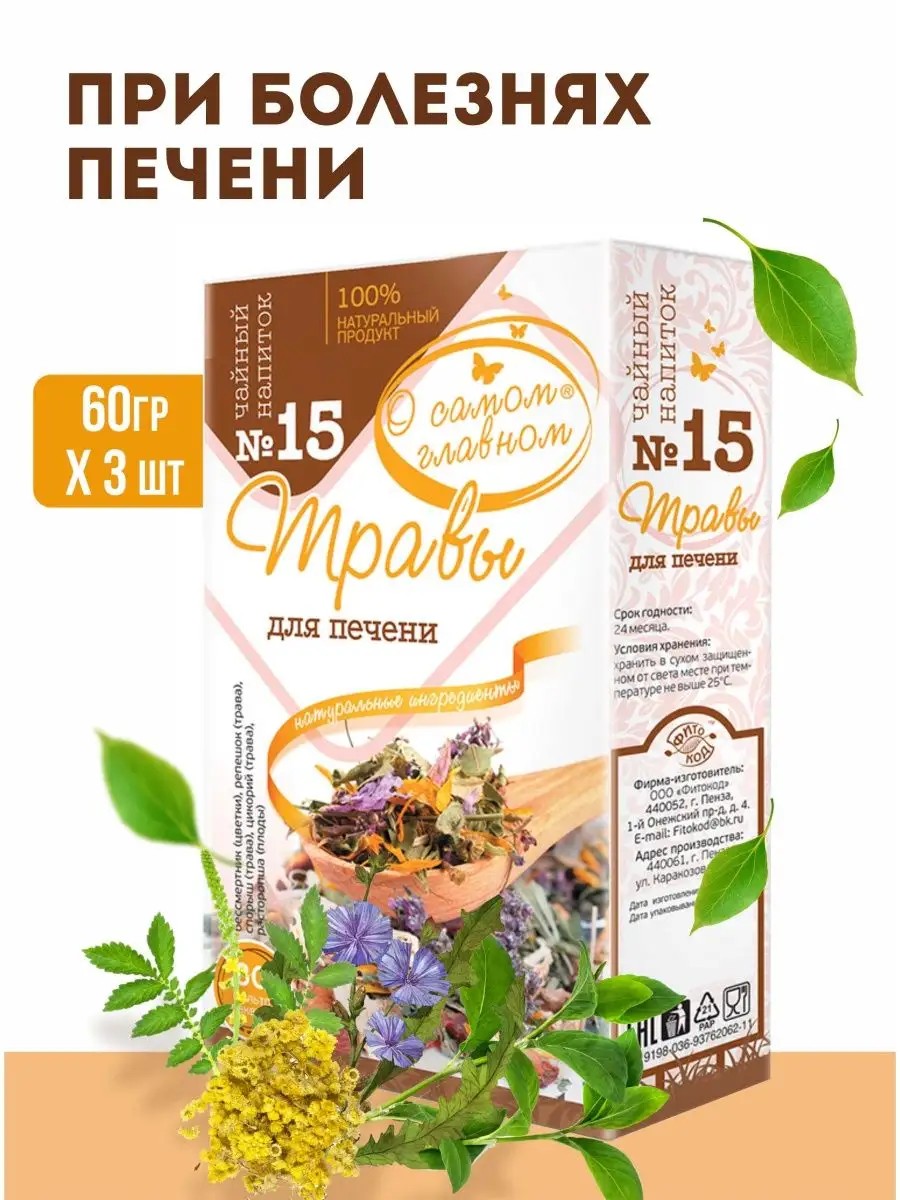 В набор входит НАПИТОК ЧАЙНЫЙ № 15 (ТРАВЫ ДЛЯ ПЕЧЕНИ), 60 г х 3 шт.
