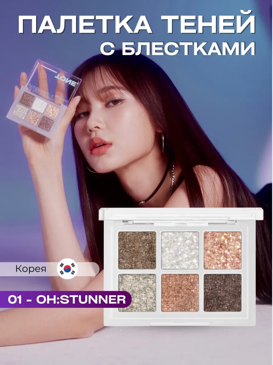 ABOUT TONE Тени для глаз с блёстками и глиттером палетка