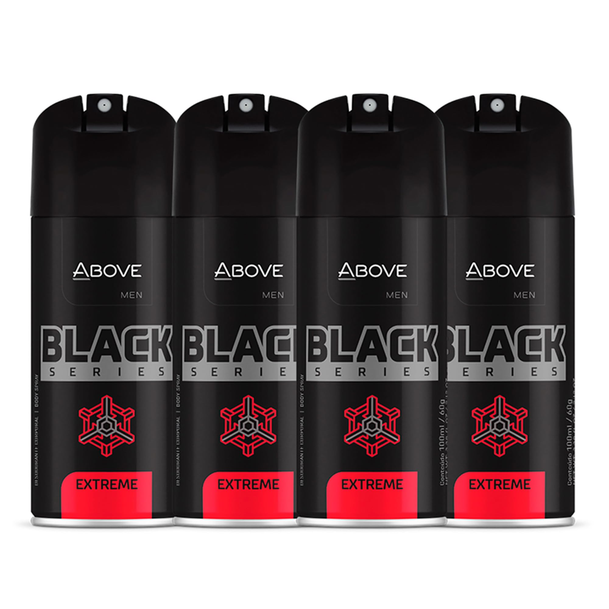 ABOVE Black Series Body Spray Extreme 4 pcs - Deodorant Spray - Woody Fragrance - Masks Perspiration Odors - Long-Lasting Dry Spray - Cruelty-Free