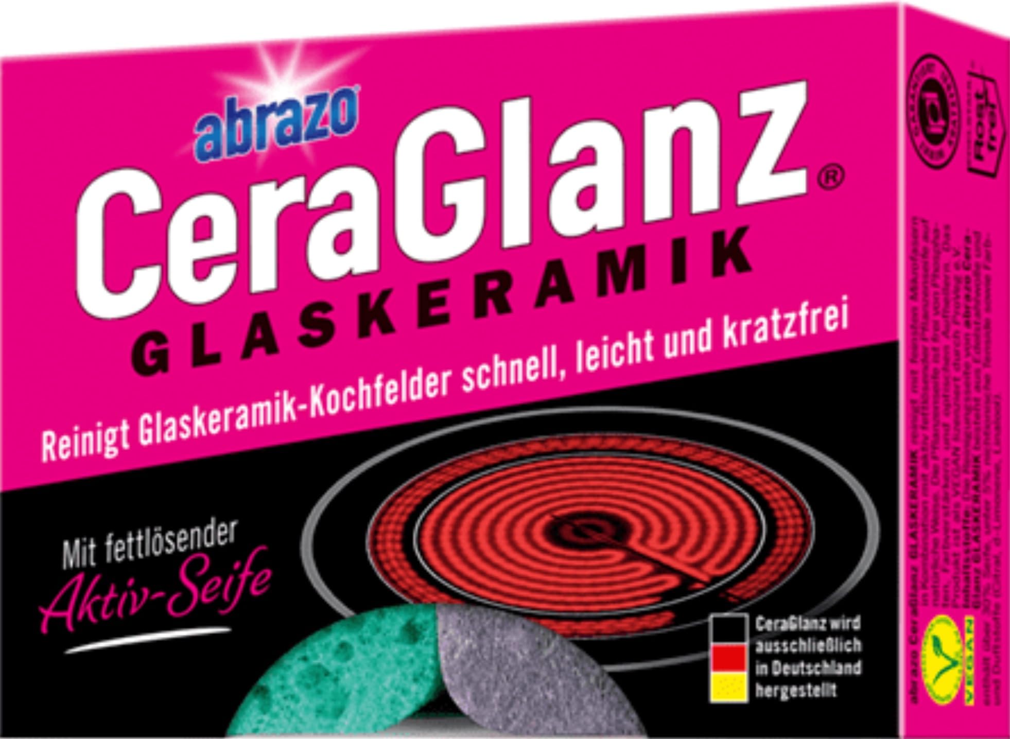 How to do it: Moisten the cleaning side of CeraGlanz GLASKERAMIK, clean and wipe the hob. Reusable. Do not rinse out CeraGlanz GLASKERAMIK, but let it dry with the foam. So it can be used multiple times. Manufacturer: OSCAR WEIL GmbH. Tramplerstr. 27 – 31, 77933 Lahr, Germany.Contents per pack: 2 pads. In 2013 abrazo was awarded as a top brand in the German food trade. Impeccable premium quality, the finest stainless steel wool ensure professional cleaning not only in the kitchen. A strong glass cleaning accessory made in Germany. Licensed as VEGAN - Made in Germany . In Germany, abrazo is synonymous with saponified cleaning pads made from steel wool. Tradition Quality Made in Germany since 1901. That is why abrazo has stood for powerful cleaning radiant cleanliness in the household for more than 100 years . How to do it: Moisten the cleaning side of CeraGlanz GLASKERAMIK, clean and wipe the hob. Reusable. Do not rinse out CeraGlanz GLASKERAMIK, but let it dry with the foam. So it can be used multiple times . Unsurpassed mode of action through the interaction of the finest stainless steel fibers in combination with degreg cleaning soap based on natural plant-based raw materials . A reliable inexpensive professional glass cleaner that works scratch-free against fats oils. Further applicability: shower, shower cubicle, window frame. Farewell scratch-prone hob scraper . Active foam dissolves all grease and dirt active fibers remove even burnt residues completely. The CeraGlanz cleaning sponge works quickly and is guaranteed scratch-free. A professional foam active soap cleaner for hygiene throughout the home . The first dual cleaner for all glass ceramic cooktops. Glass scraper glass cleaner in one. An effective cleaner for the stovetop hotplate made of glass ceramic. This means that your ceramic hob is guaranteed to be free of burnt-in dirt . This is how CeraGlanz GLASS-CERAMIC works: The finest stainless steel fibers remove burnt and stubborn incrustations quickly and without leaving any residue. Natural vegetable soap removes all greasy dirt. Without aggressive chemicals. Absolutely scratch-free on the sensitive glass ceramic surfaces . Abrazo CeraGlanz GLASKERAMIK is the 1st special surface cleaner for glass ceramic hobs .