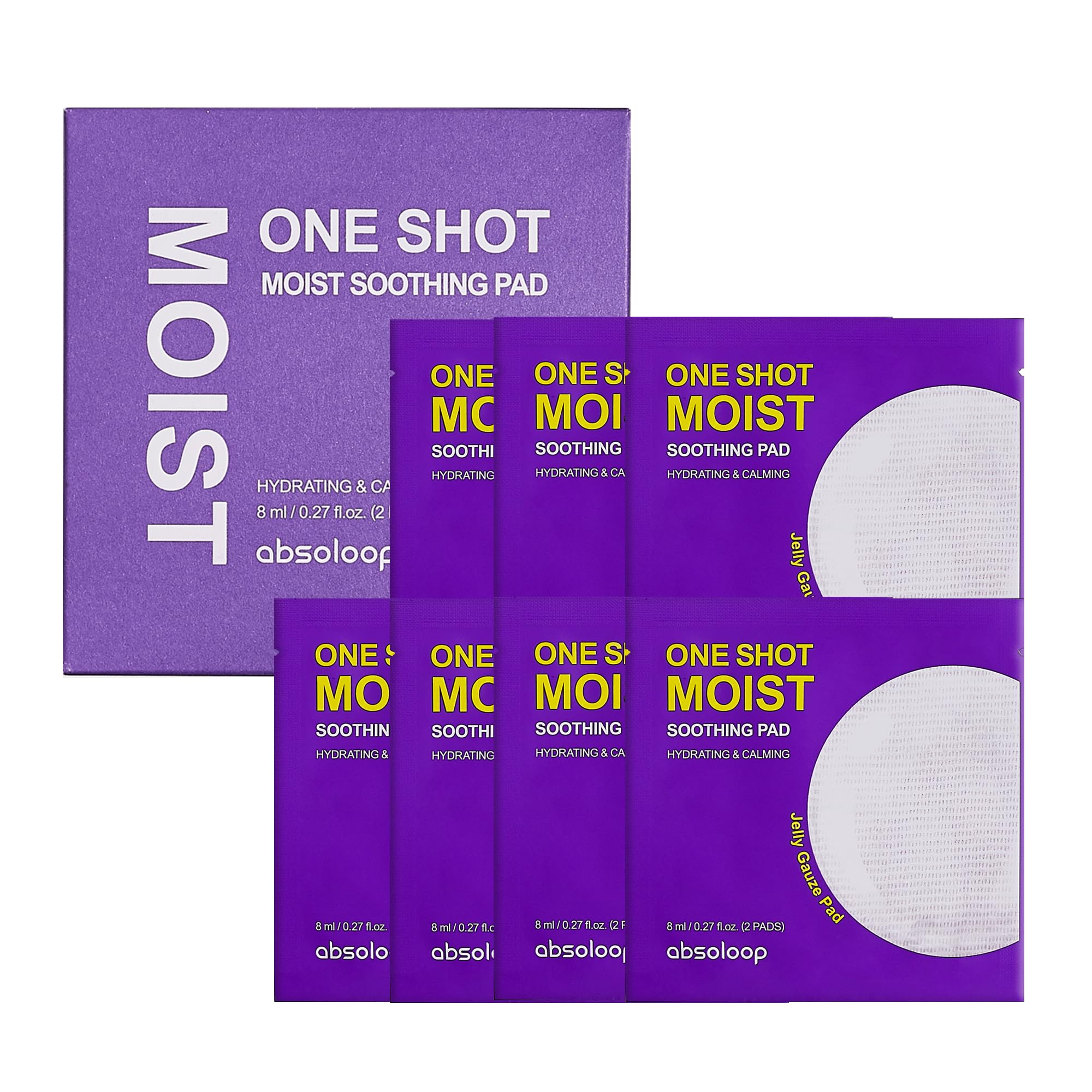 ABSOLOOP One Shot Moist Soothing Pad - 8ml Dual-Texture Toner Pad Ceramide & Hyaluronic Acid Patented Soothing Agents Portable 7-Sheet Pack