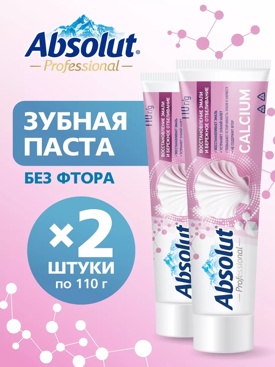 Absolut Зубная паста отбеливающая кальций без фтора 2х110г