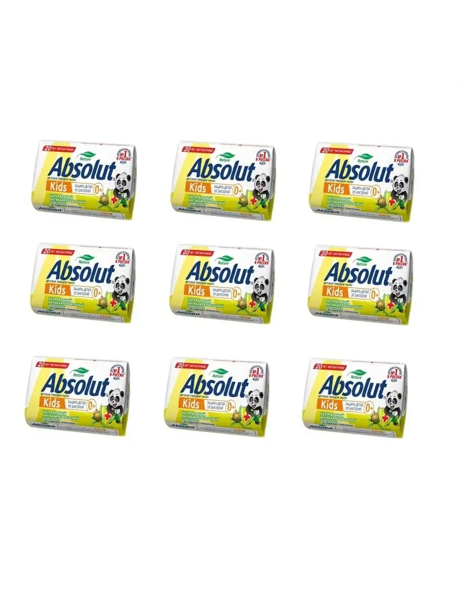 Абсолют, мыло туалетное детское Kids Череда 90 г, 9 шт. Мыло детское антибактериальное Absolut с чередой обладает эффективным антибактериальным комплексом и ухаживающим за нежной детской кожей компонентом чередой. Благодаря 100% натуральной основе и натуральному экстракту масла чайного дерева, Absolut обеспечивает безопасную защиту от бактерий каждый день. Основной антибактериальный компонент-алоэ способствует увлажнению кожи, обогащению витаминами и минералами. Экстракт череды в составе мыла обладает ярко выраженными полезными свойствами для борьбы с проблемами кожи. Мыло используется для купания младенцев, так как нежно устраняет раздражение и опрелости, спасает от диатеза и укрепляет организм. Гипоаллергенность подтверждена. Мыло на натуральной основе прекрасно пенится, подходит для ежедневного использования, экономично расходуется. Мыло не содержит триклозан и красители.