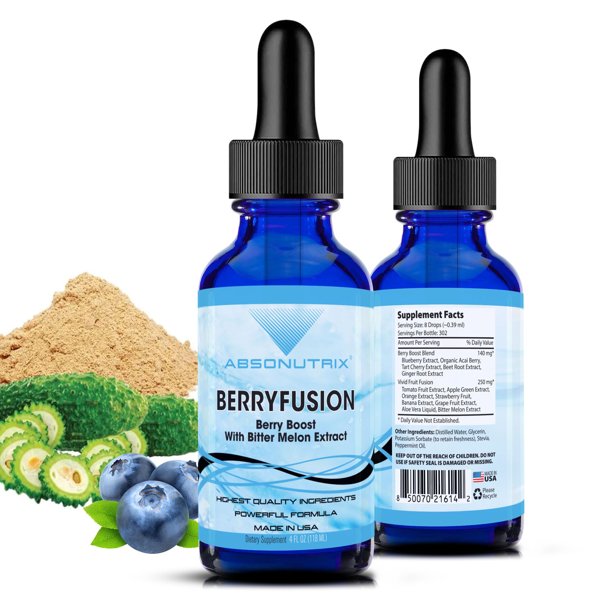 Absonutrix BerryFusion 390 mg 4 FL OZ Liquid 302 Servings Made in USA Plant-Based Ingredients Blueberry Extract Bitter Melon Gluten-Free Non-GMO