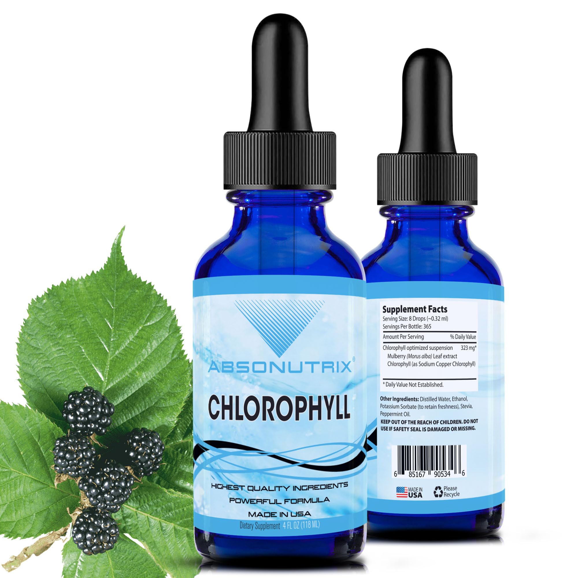 Absonutrix Chlorophyll Liquid Drops 323 mg 4 Oz Liquid 365 Servings Made in USA Quick Absorption Quality Potent Ingredients Non-GMO GMP Certified Cruelty-Free Products