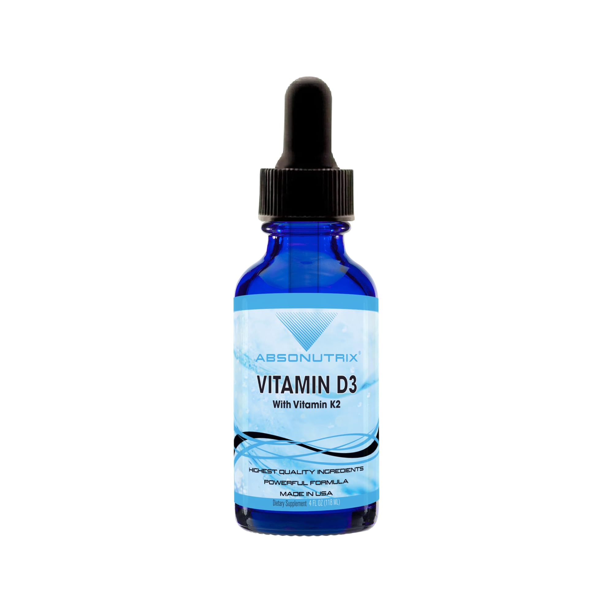 Absonutrix Vitamin D3 K2 Drops 390mg 4 Oz Liquid 302 Servings Made in USA Quick Absorption Quality Potent Ingredients Non-GMO GMP Certified Cruelty-Free Products Bone Strength Supplements