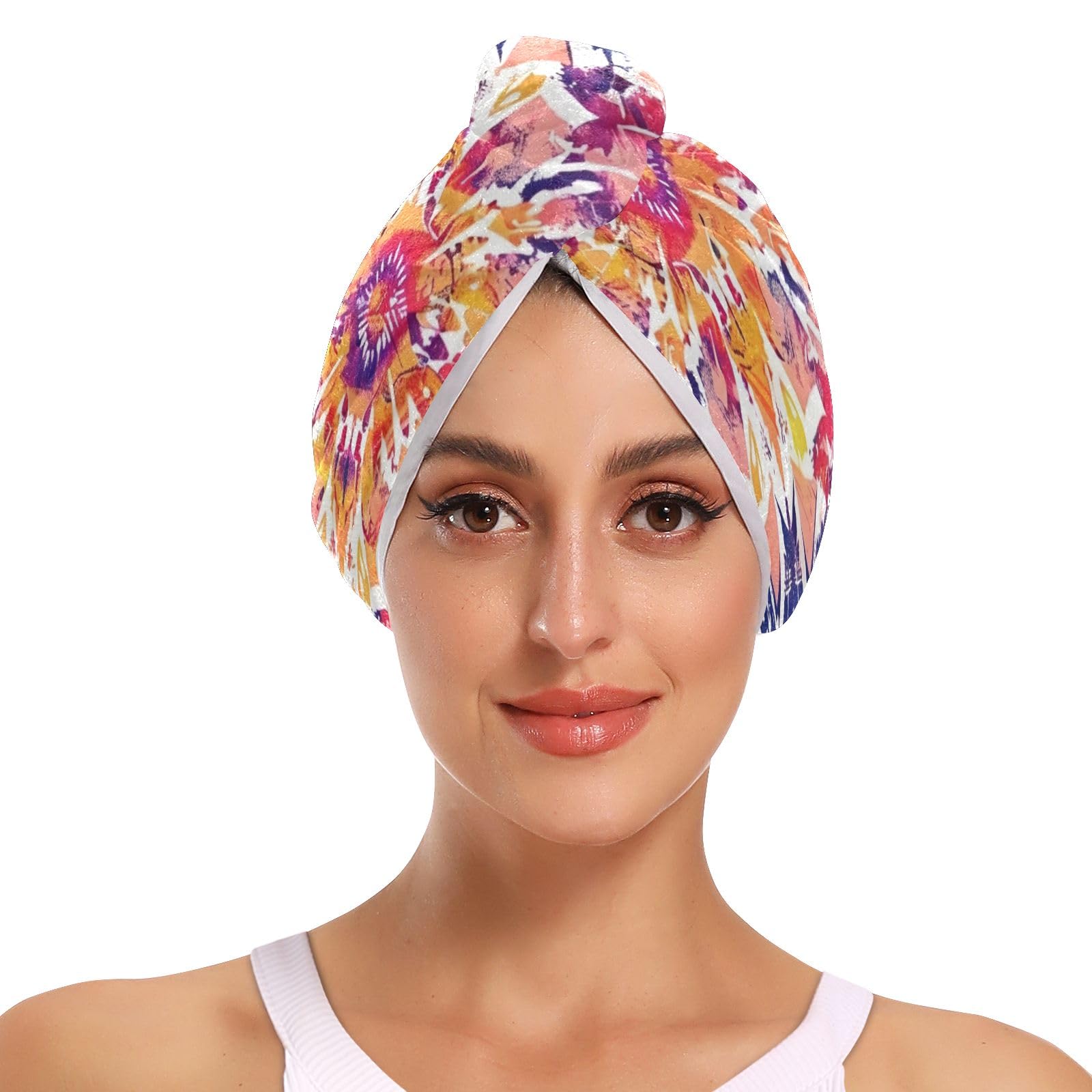 Abstract Flower Hair Towel 2 Pack Super Absorbent Hair Drying Towel Quick Dry Hair Turbans Head Towel with Button Twisty Wrap for Women Girls