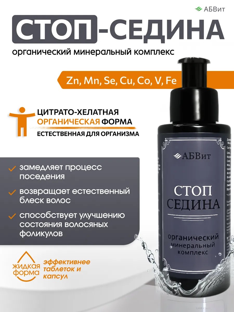 The combination of single-elements in the Stop Gray Hair Mineral Complex from ABVit is beneficial for both men and women suffering from hair problems such as premature graying and thinning and brittle hair.