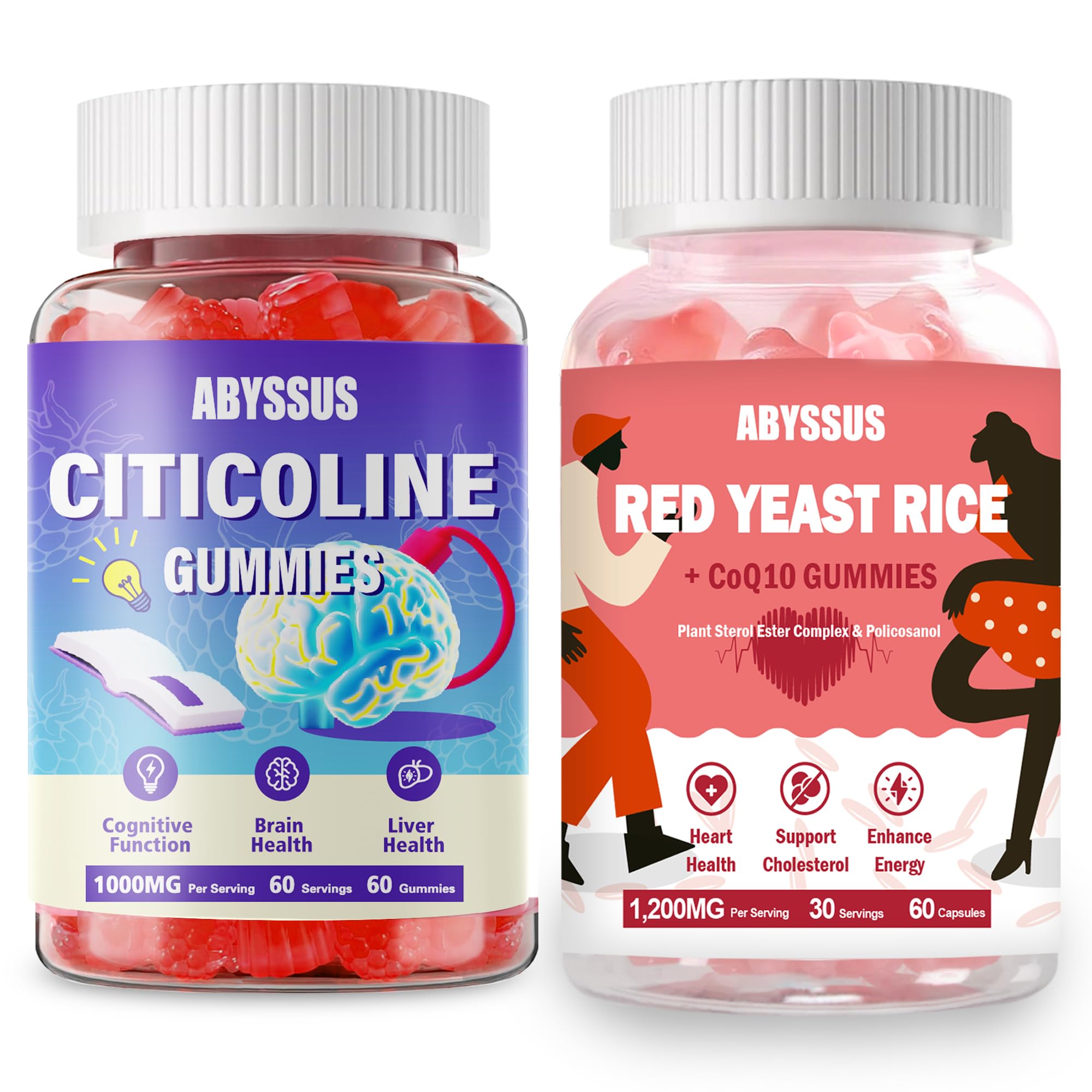 ABYSSUS A Bundle of CDP-Choline Gummies + Red Yeast Rice & CoQ10 Gummies Designed to Cognitive Support and Heart Health in a Tasty Convenient Format