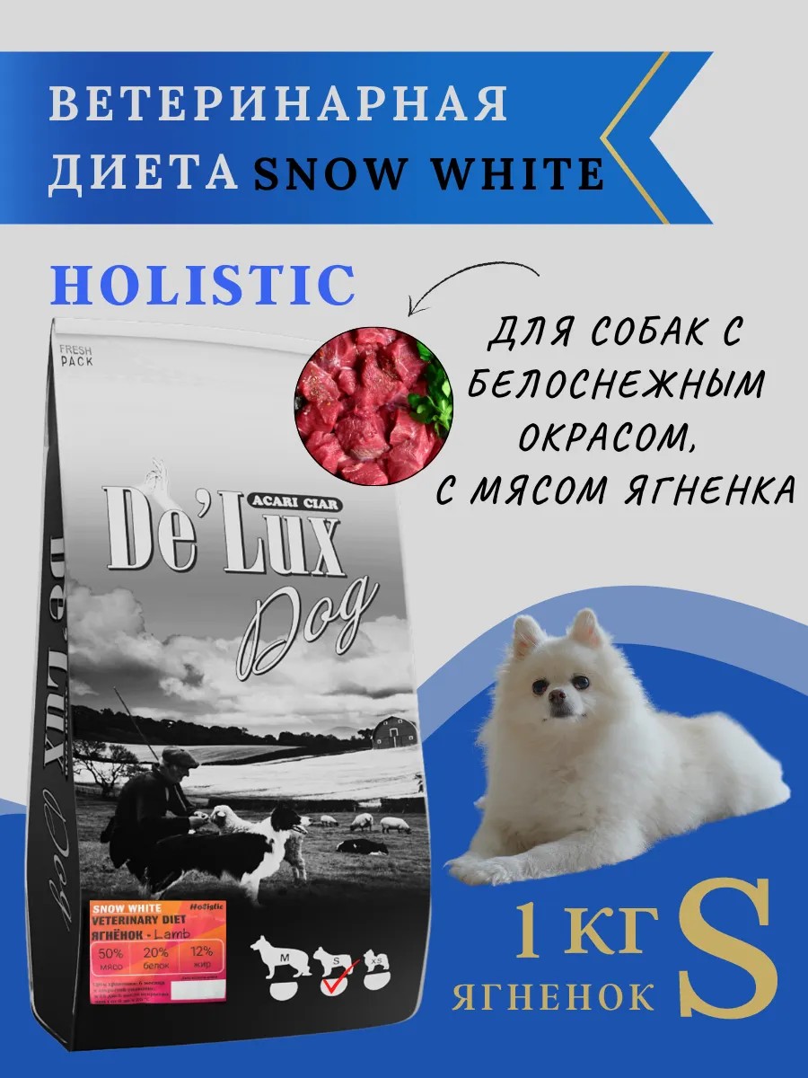 Гипоаллергенный сбалансированный сухой корм для собак с белоснежным окрасом, класса холистик с ягнёнком для взрослых собак всех пород.